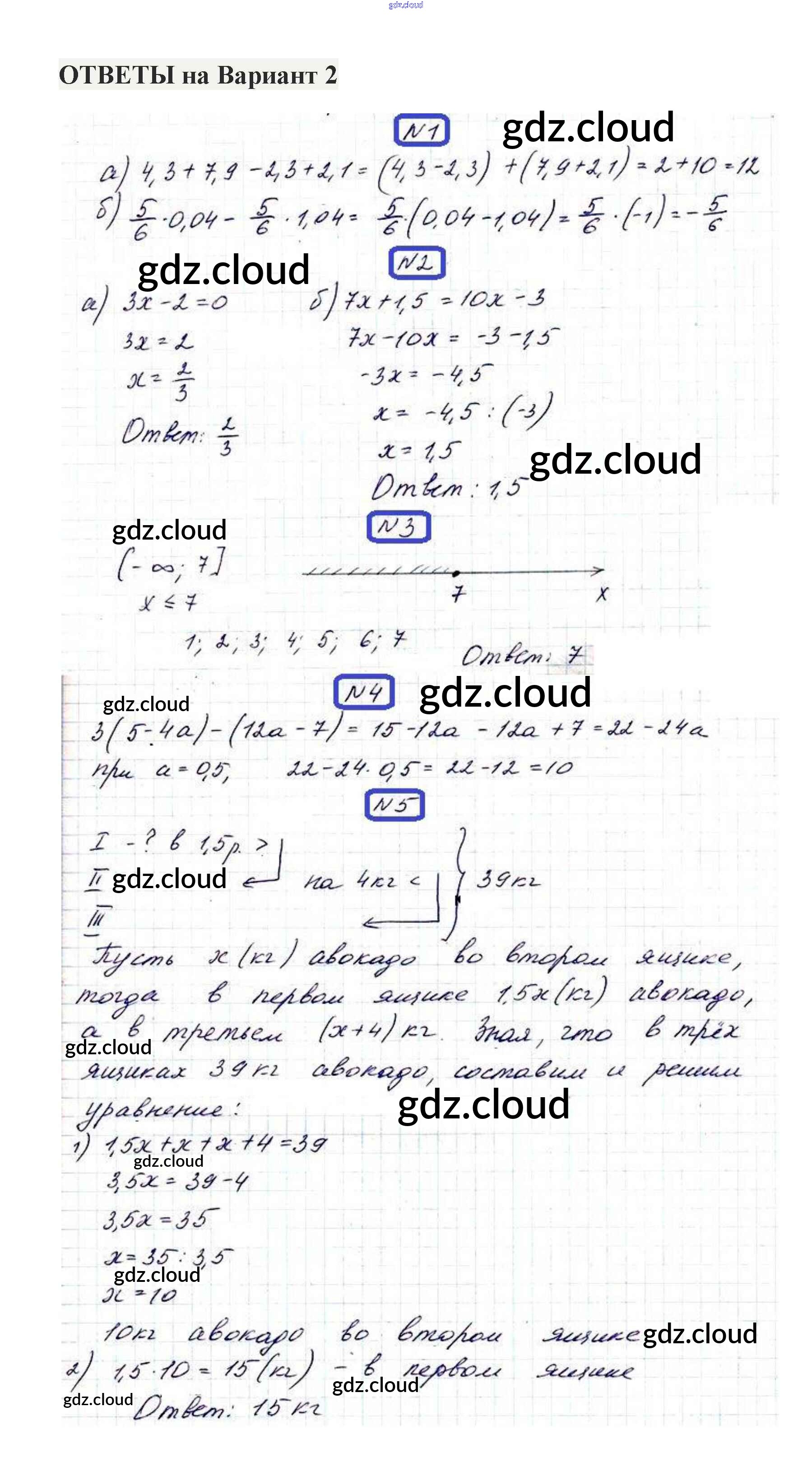 КР-1. Варианты Ответы к Контрольным работам по Алгебре 7 класс Контрольные работы Александрова    Мнемозина