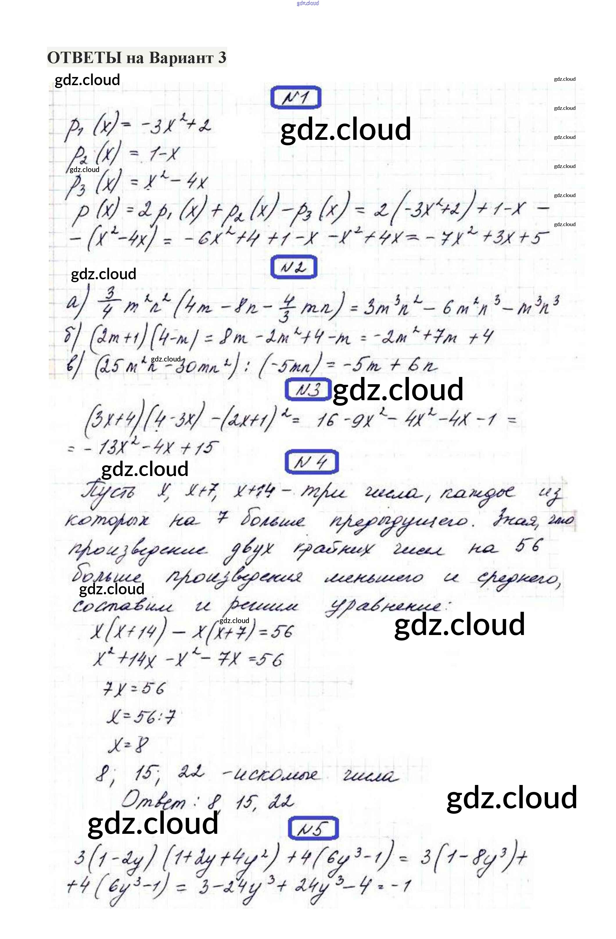 КР-5. Варианты Ответы к Контрольным работам по Алгебре 7 класс Контрольные работы Александрова    Мнемозина