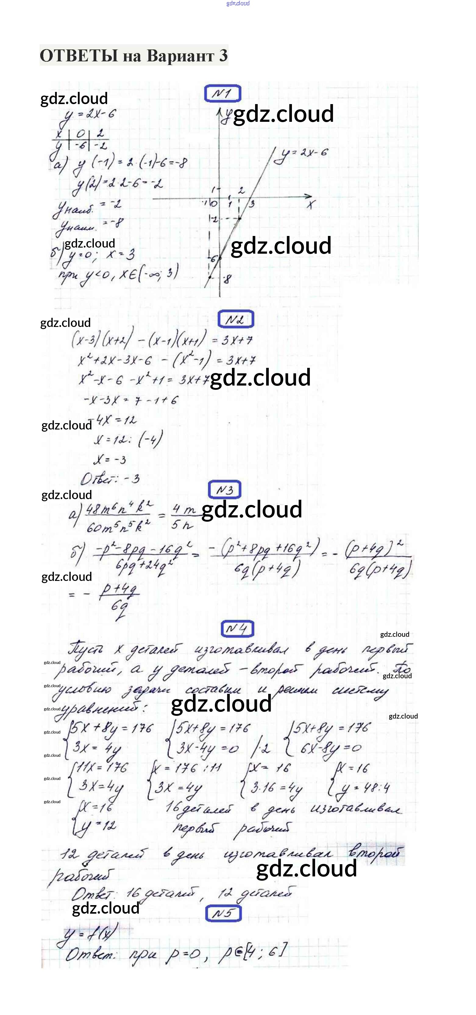 Итоговая контрольная работа. Варианты Ответы к Контрольным работам по Алгебре 7 класс Контрольные работы Александрова    Мнемозина