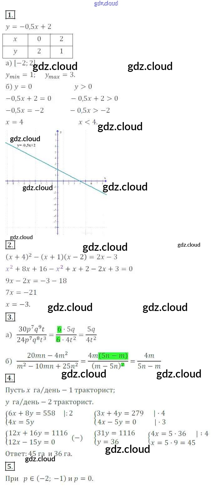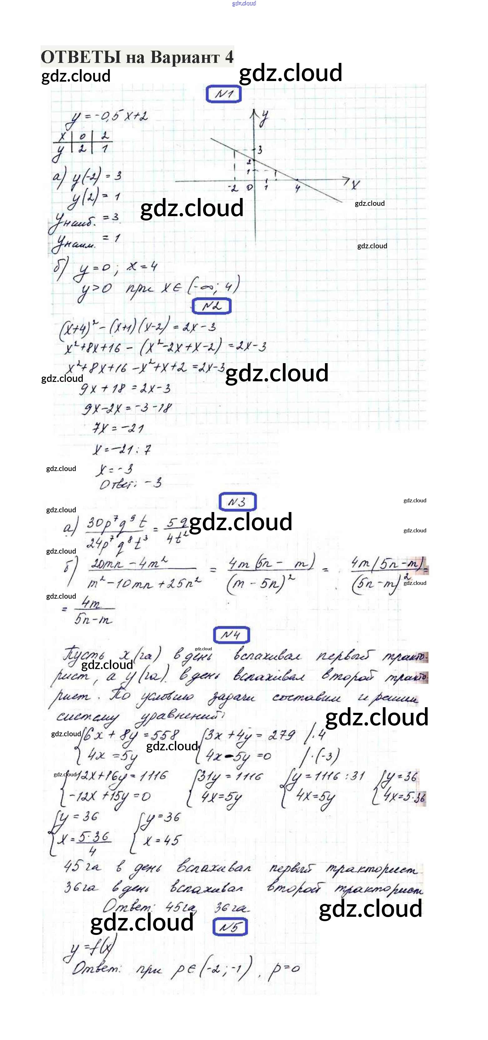 Итоговая контрольная работа. Варианты Ответы к Контрольным работам по Алгебре 7 класс Контрольные работы Александрова    Мнемозина