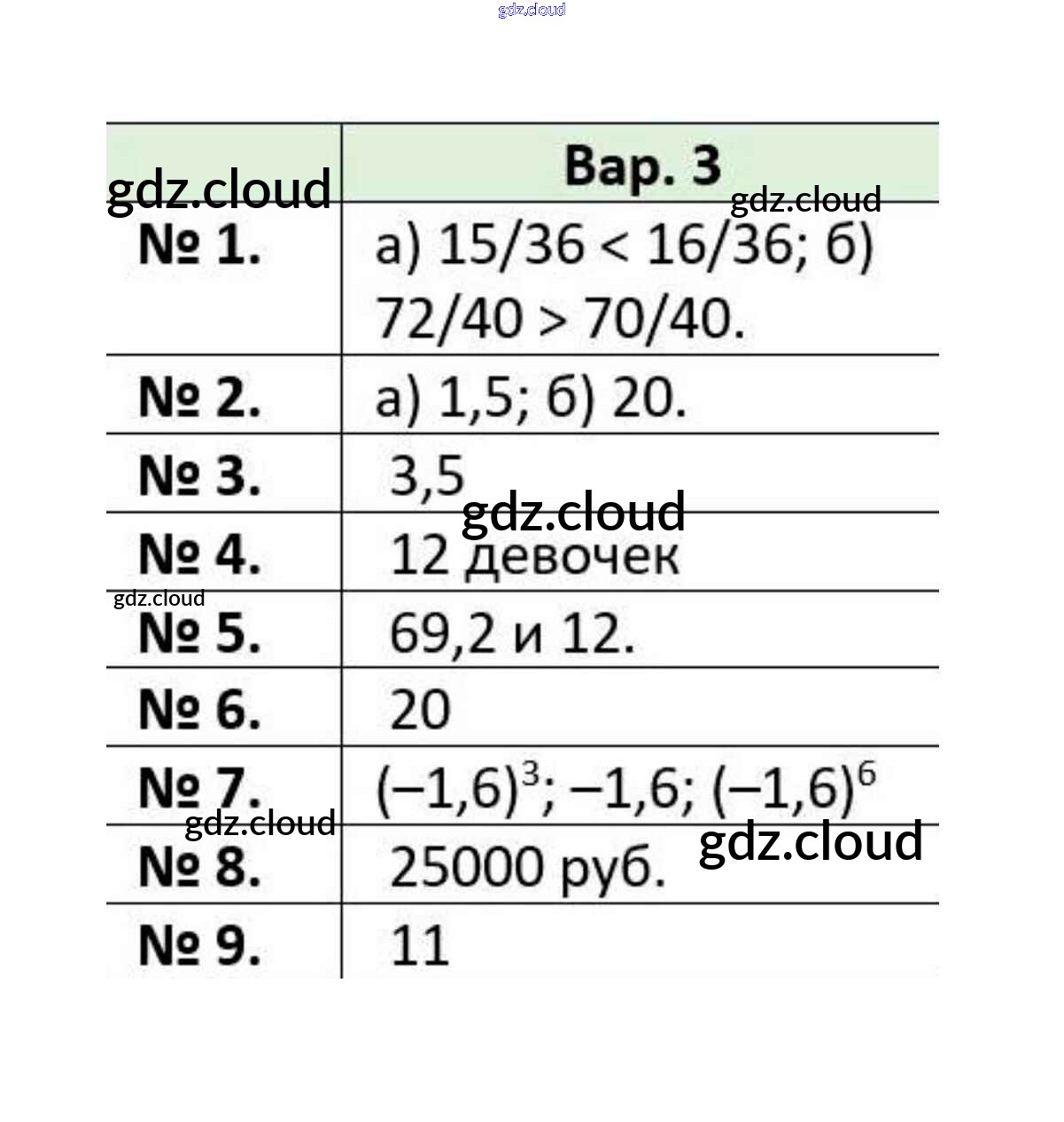 Ответы к Контрольной работе №1. Дроби и проценты  по Алгебре 7 класс Контрольные работы Кузнецова    Просвещение