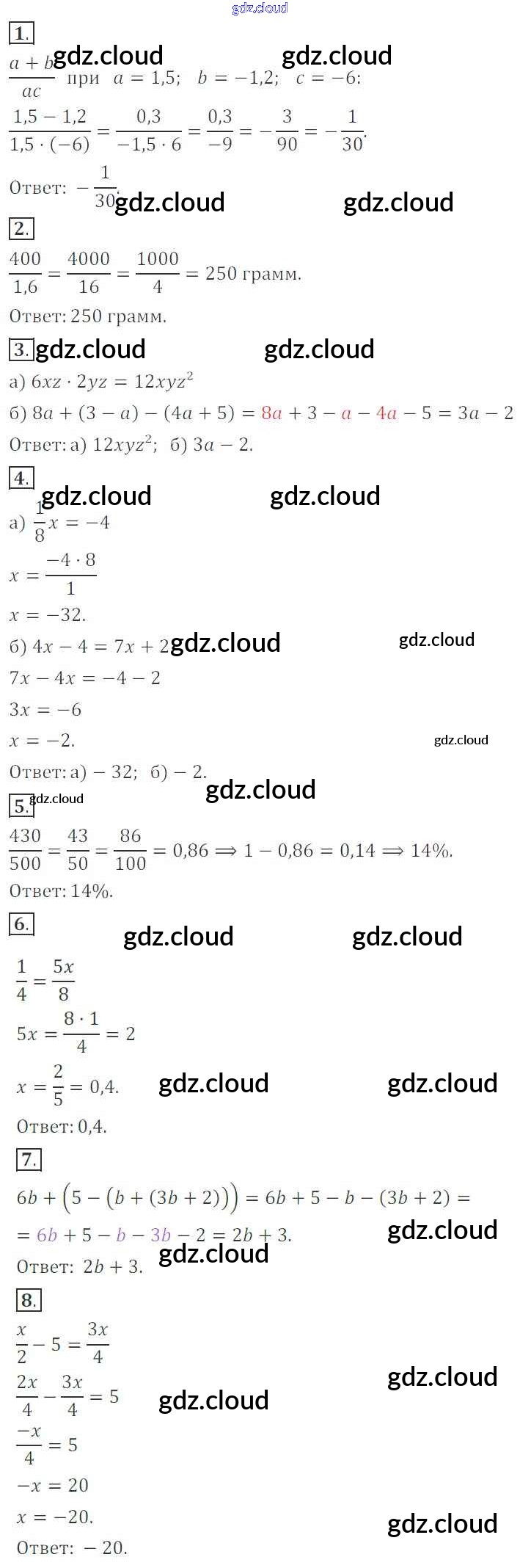 Ответы к Контрольной работе №10. Итоговая работа за I полугодие  по Алгебре 7 класс Контрольные работы Кузнецова    Просвещение