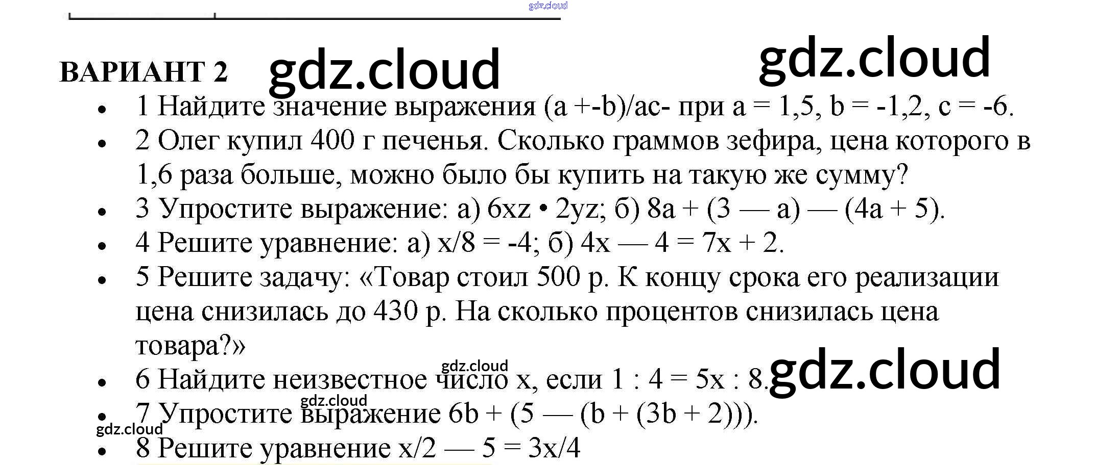 Ответ на задание Вариант 2 Контрольные работы Алгебра  за 7 (седьмой) класс Кузнецова, Минаева, Рослова, Суворова   2018