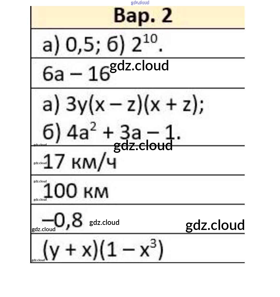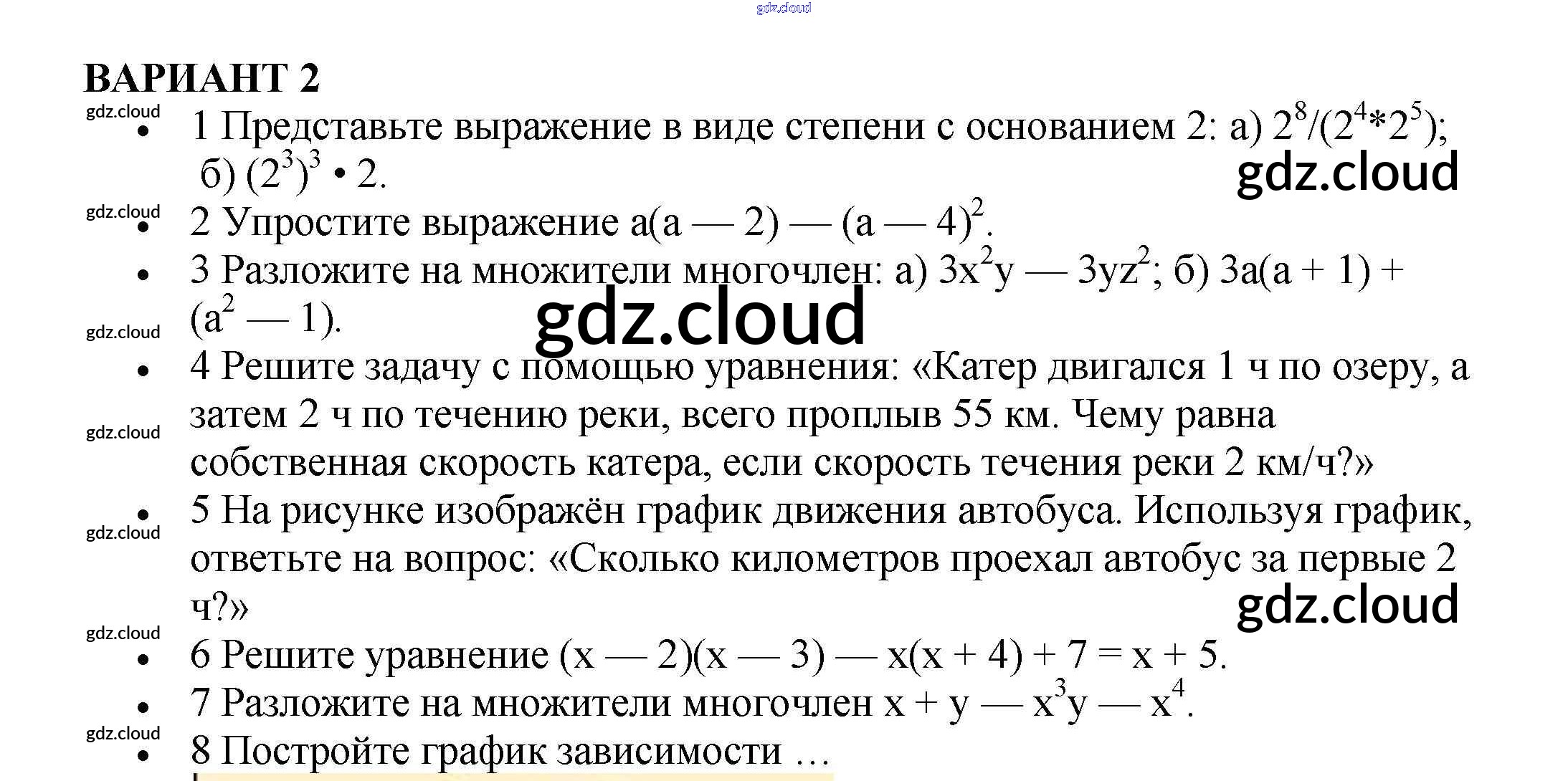 Ответ на задание Вариант 2 Контрольные работы Алгебра  за 7 (седьмой) класс Кузнецова, Минаева, Рослова, Суворова   2018