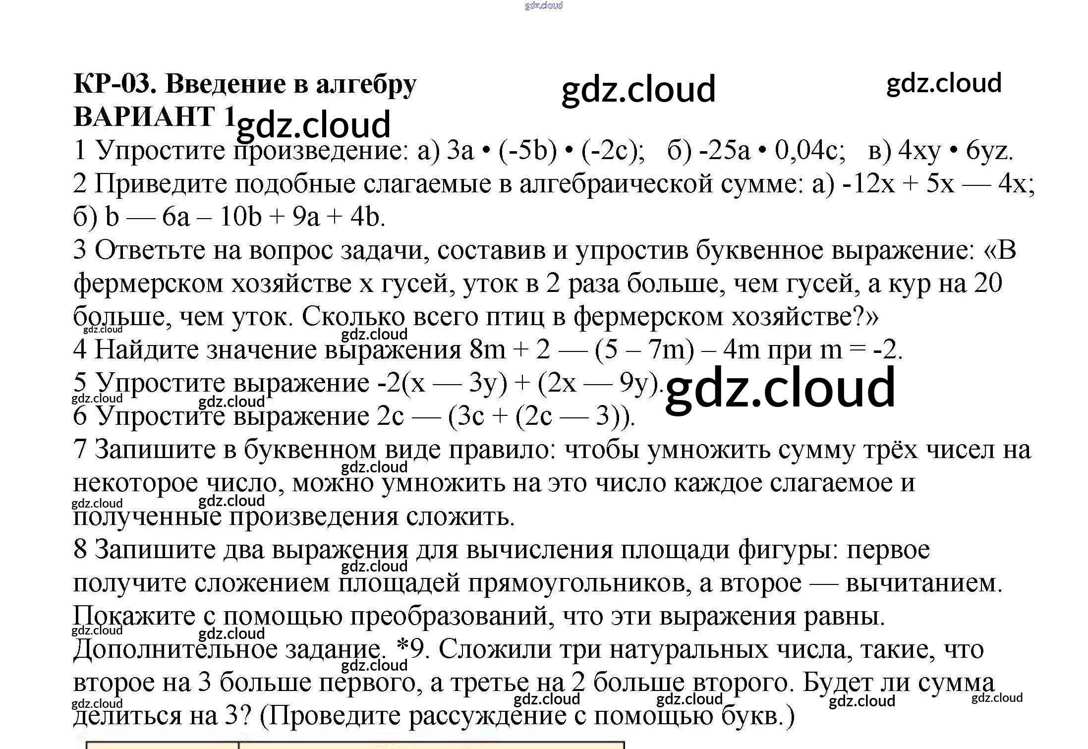 Ответ на задание Вариант 1 Контрольные работы Алгебра  за 7 (седьмой) класс Кузнецова, Минаева, Рослова, Суворова   2018