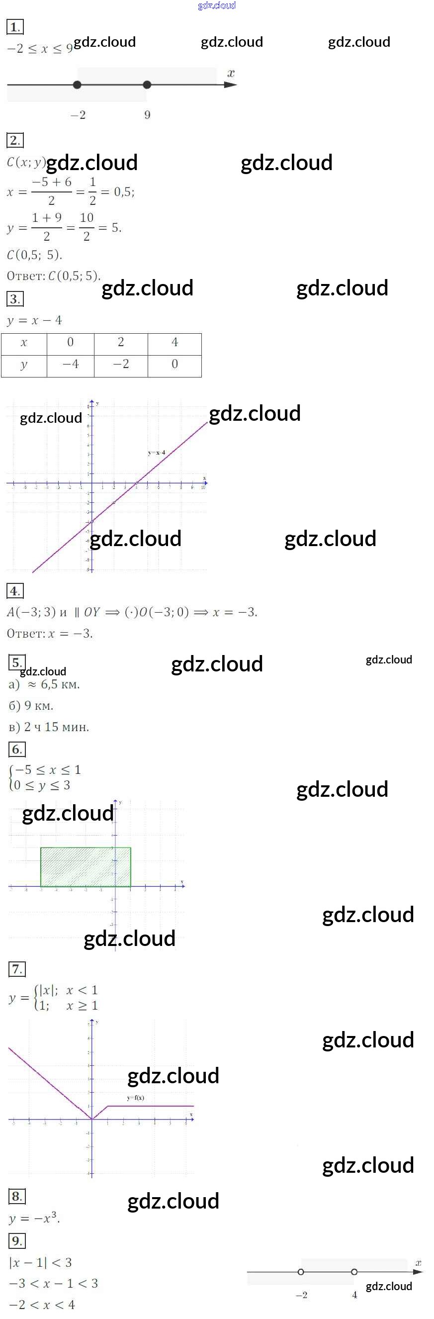Ответы к Контрольной работе №5. Координаты и графики  по Алгебре 7 класс Контрольные работы Кузнецова    Просвещение