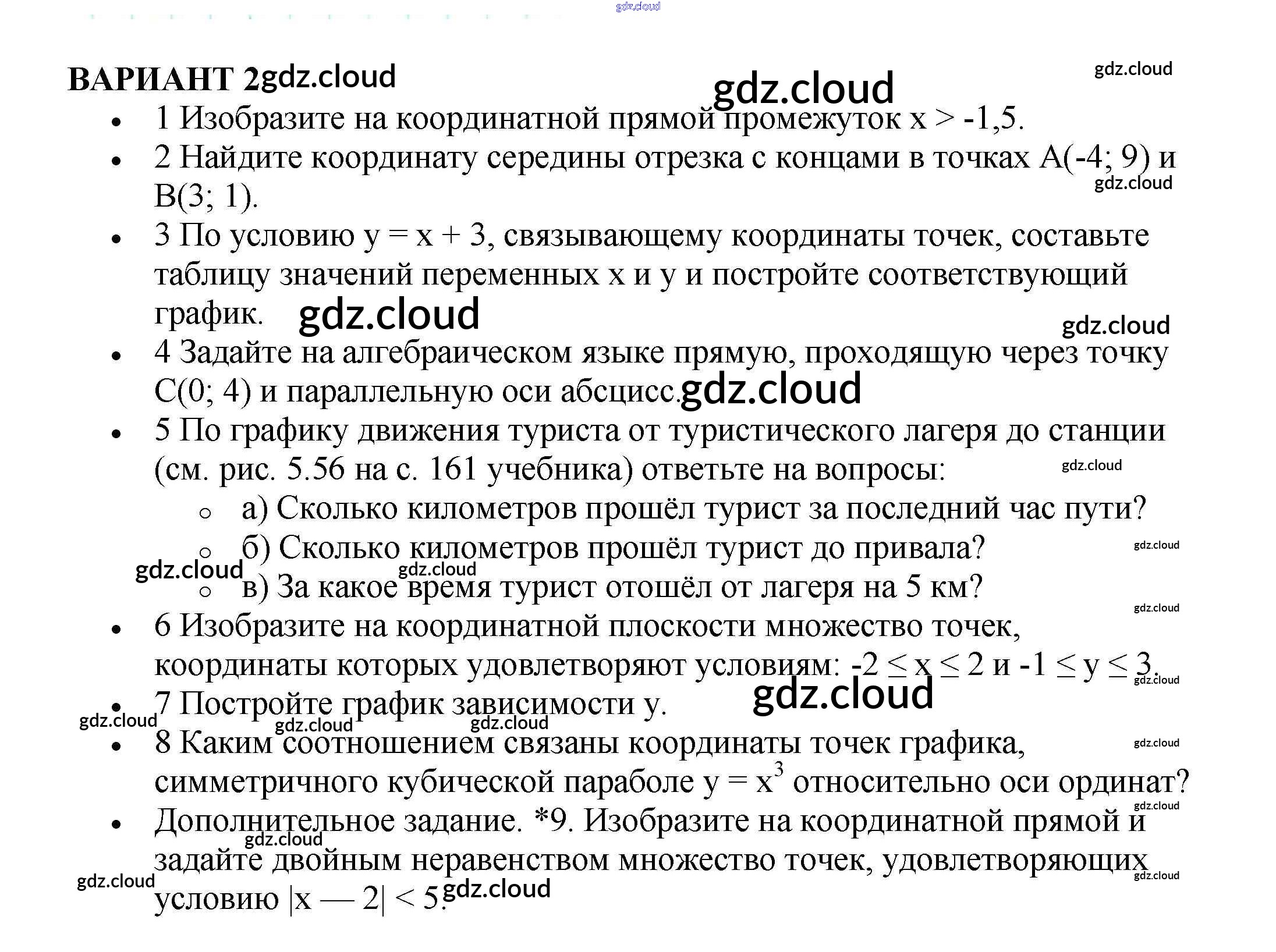 Ответы к Контрольной работе №5. Координаты и графики  по Алгебре 7 класс Контрольные работы Кузнецова    Просвещение