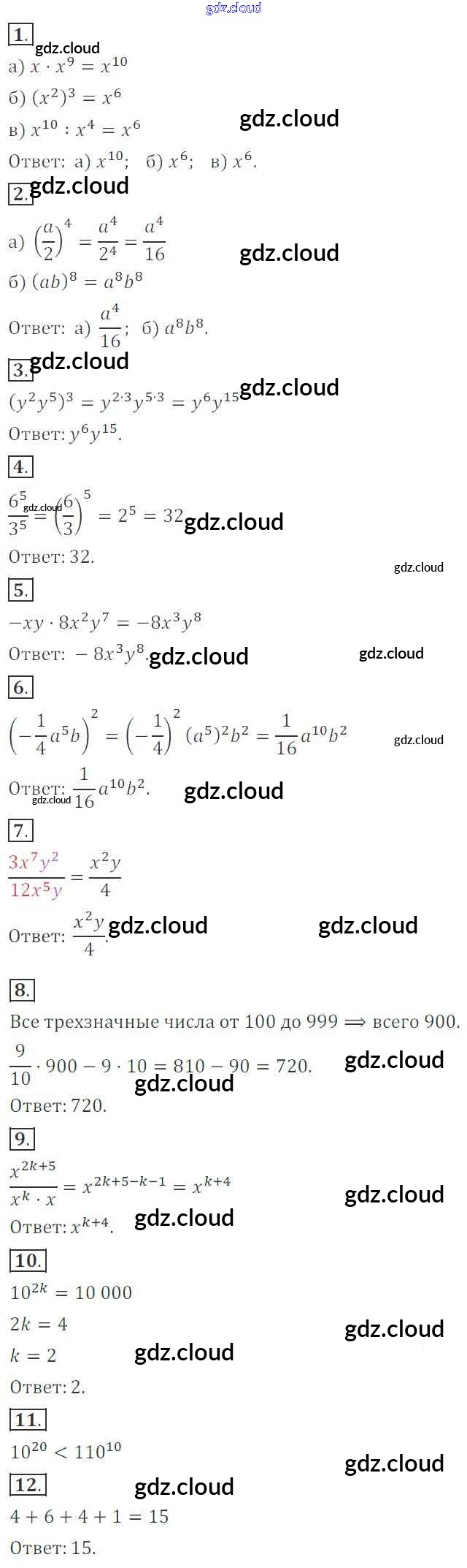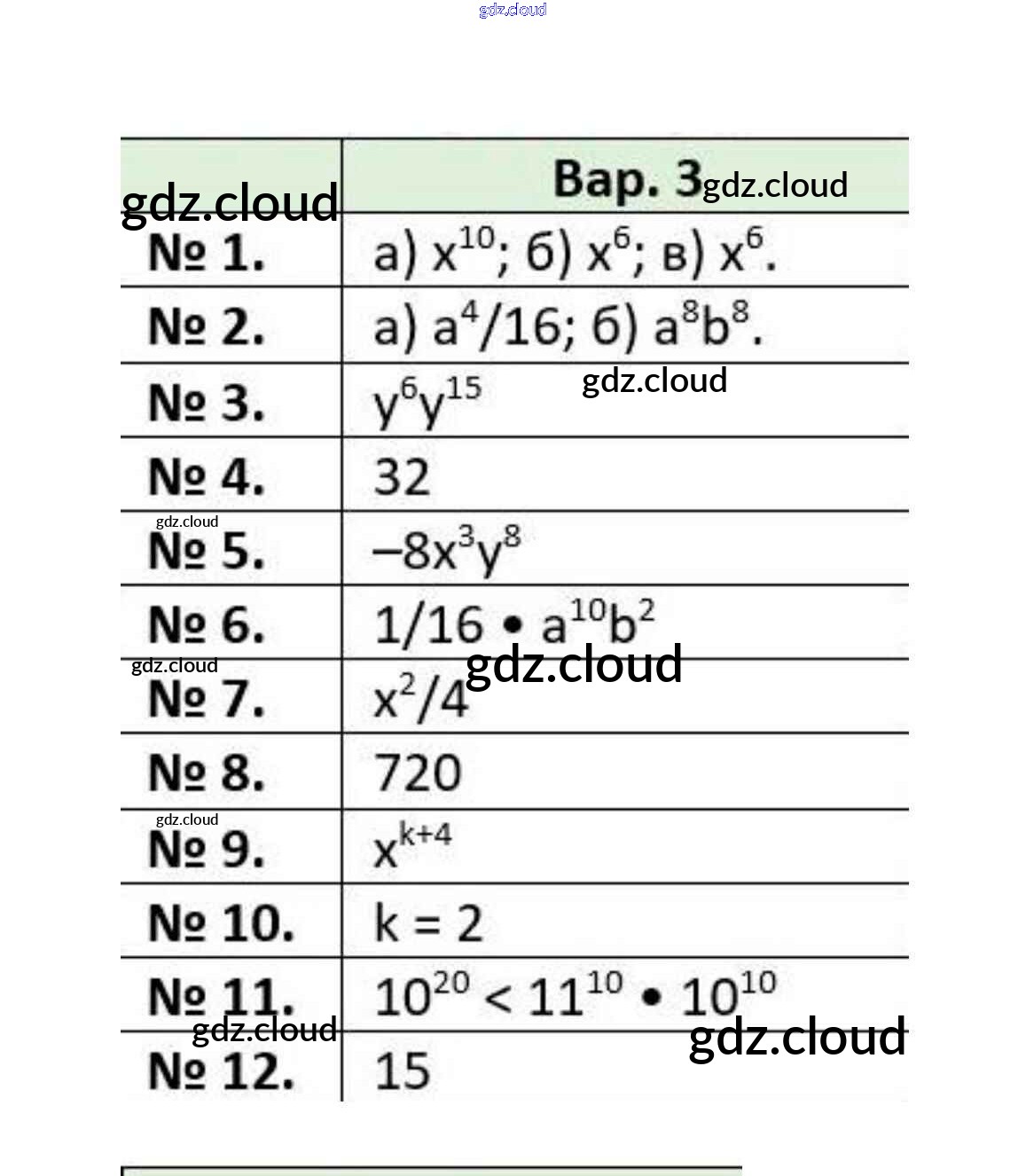 Ответы к Контрольной работе №6. Свойства степени с натуральным показателем  по Алгебре 7 класс Контрольные работы Кузнецова    Просвещение
