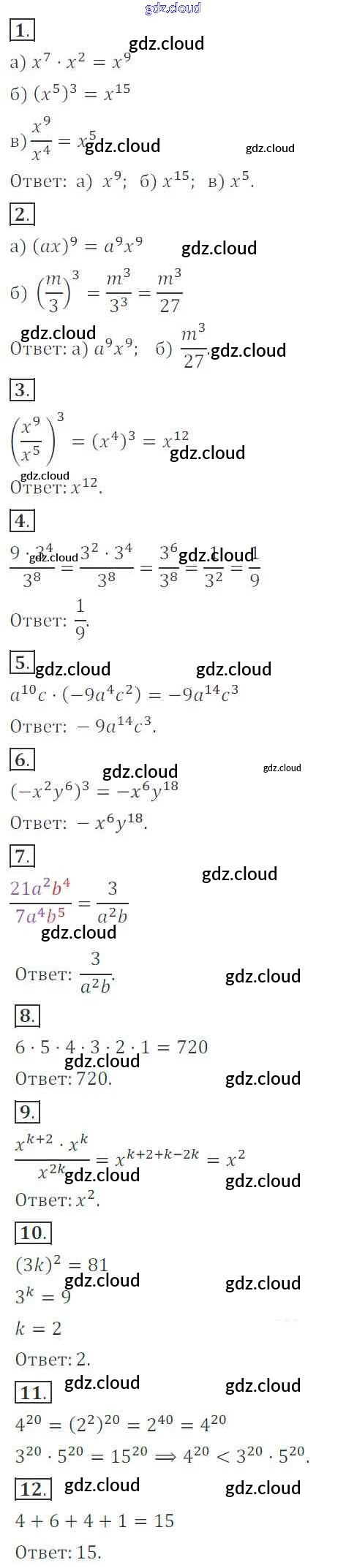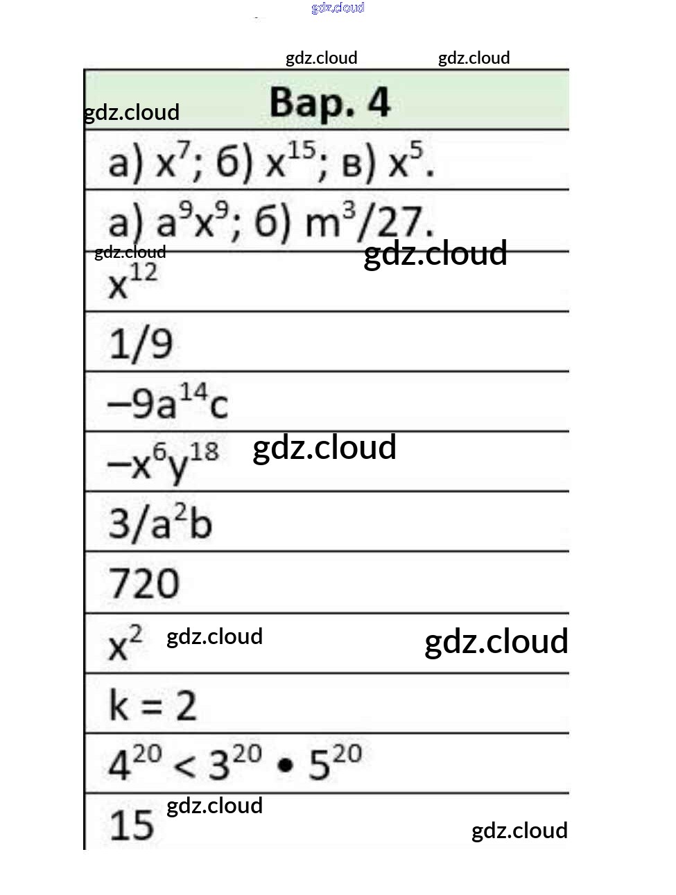 Ответы к Контрольной работе №6. Свойства степени с натуральным показателем  по Алгебре 7 класс Контрольные работы Кузнецова    Просвещение