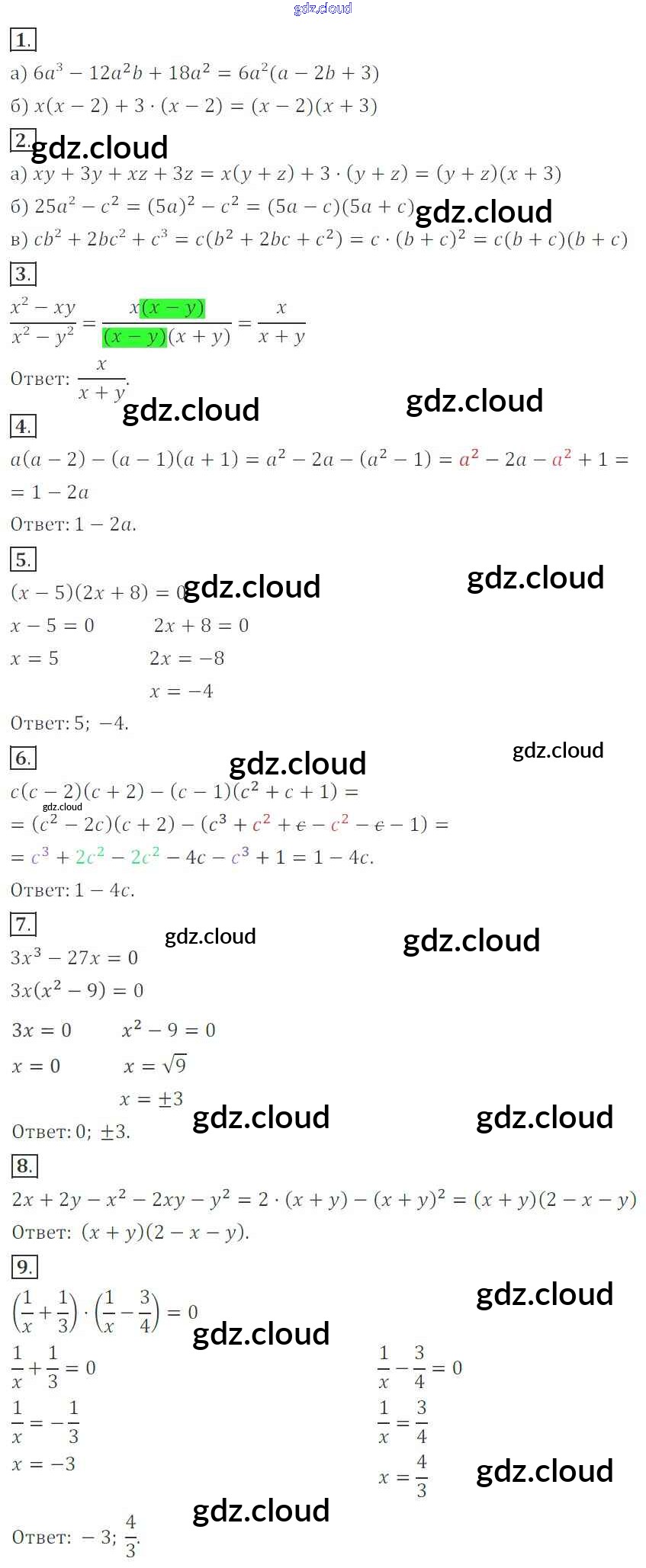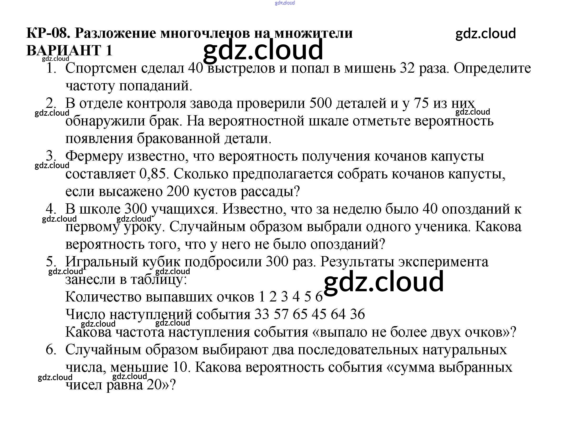 Ответы к Контрольной работе №8. Разложение многочленов на множители  по Алгебре 7 класс Контрольные работы Кузнецова    Просвещение