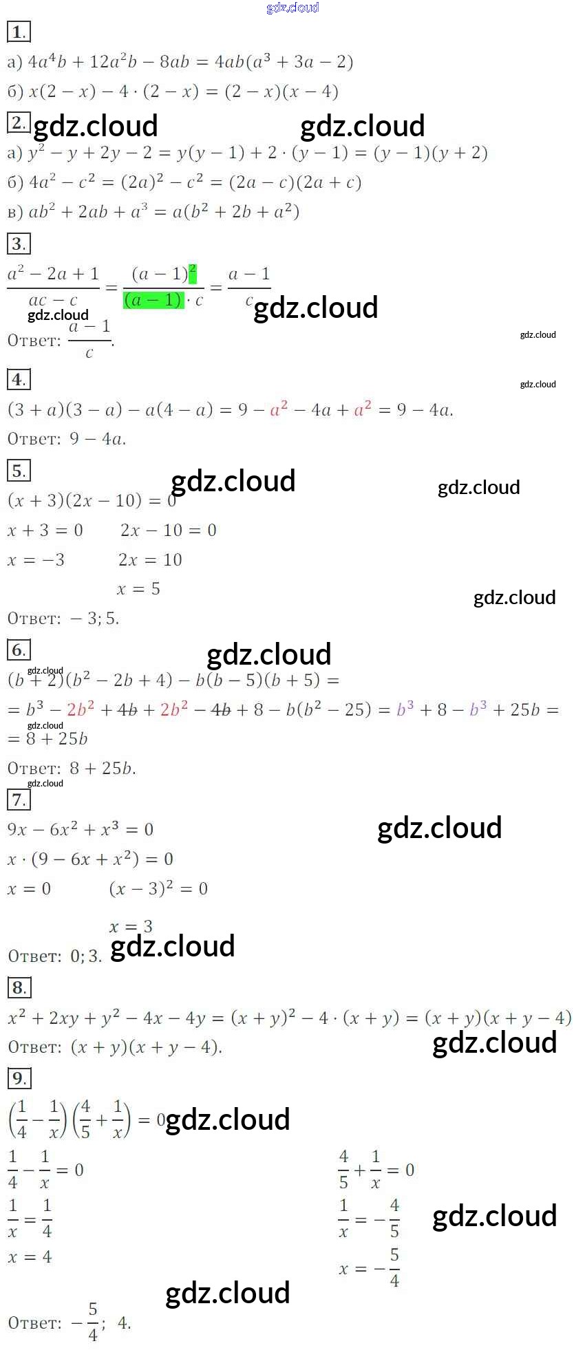 Ответы к Контрольной работе №8. Разложение многочленов на множители  по Алгебре 7 класс Контрольные работы Кузнецова    Просвещение
