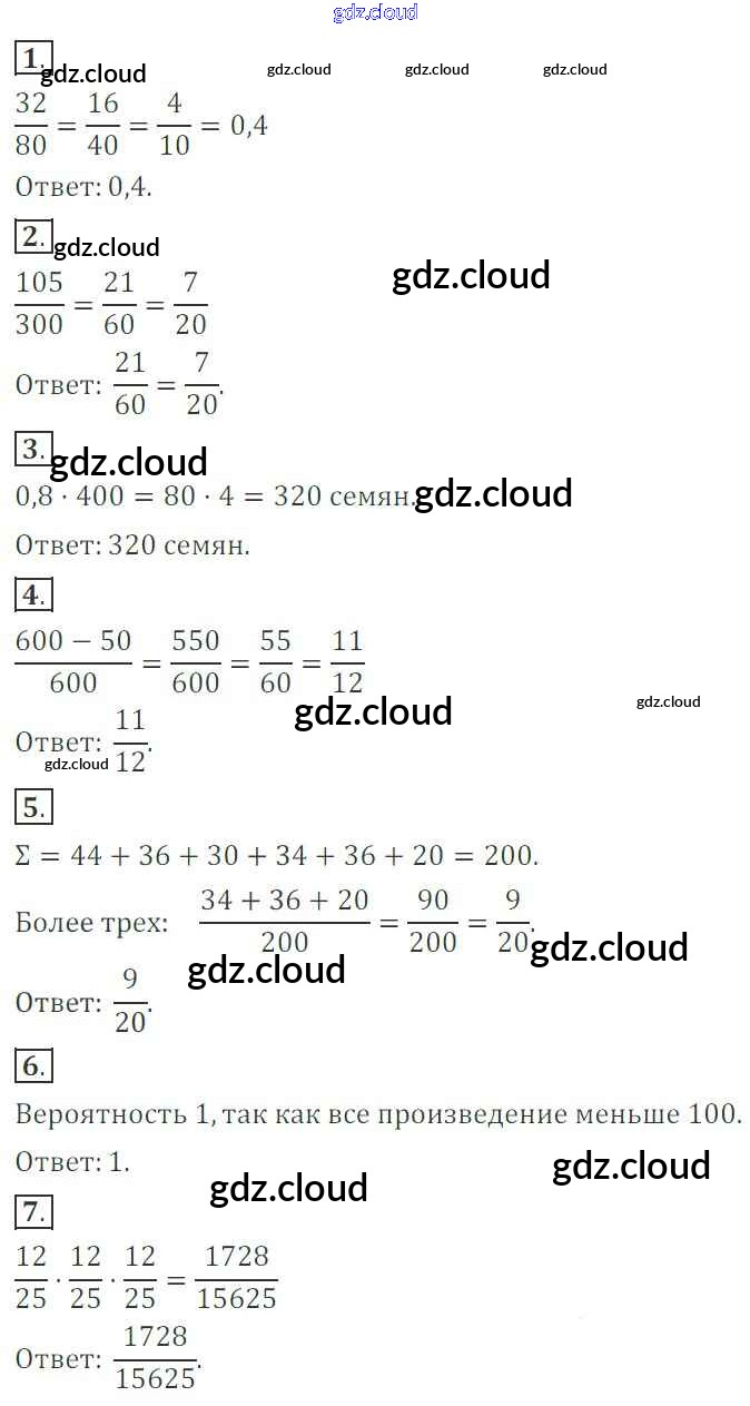 Ответы к Контрольной работе №9. Частота и вероятность  по Алгебре 7 класс Контрольные работы Кузнецова    Просвещение