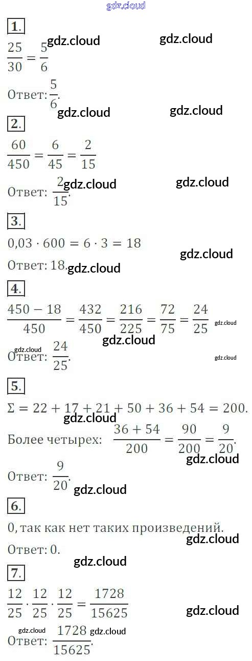 Ответы к Контрольной работе №9. Частота и вероятность  по Алгебре 7 класс Контрольные работы Кузнецова    Просвещение