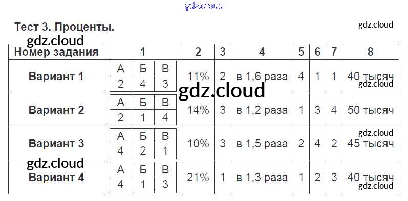 Ответы к Тестам по Алгебре 7 класс Тематические тесты Кузнецова Просвещение