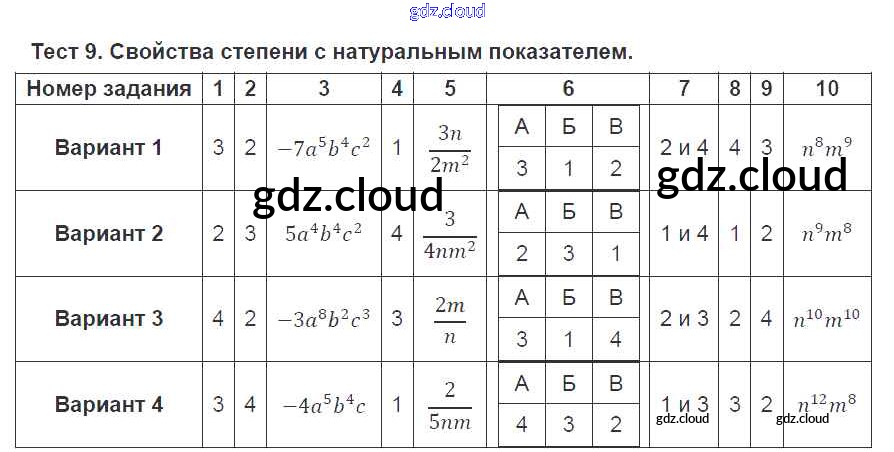 Ответы к Тестам по Алгебре 7 класс Тематические тесты Кузнецова Просвещение