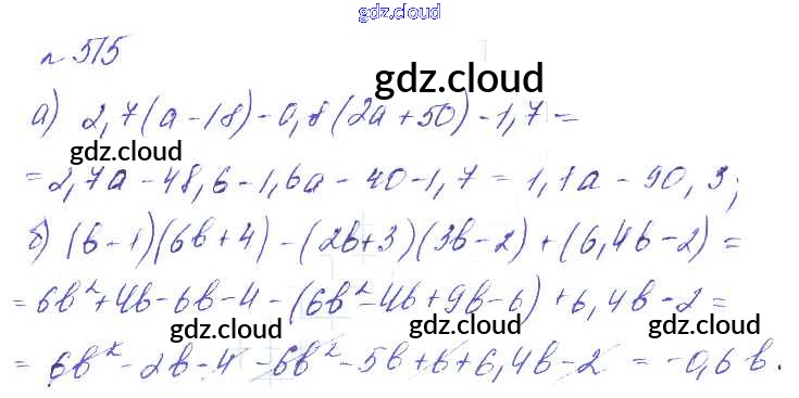 Ответ на задание 515 Учебник Алгебра за 7 (седьмой) класс Макарычев, Миндюк, Нешков, Феоктистов УМК Углубленный уровень 2013