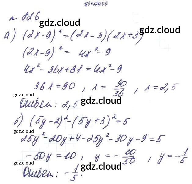 Ответ на задание 826 Учебник Алгебра  за 7 (седьмой) класс Макарычев, Миндюк, Нешков, Феоктистов УМК Углубленный уровень 2013