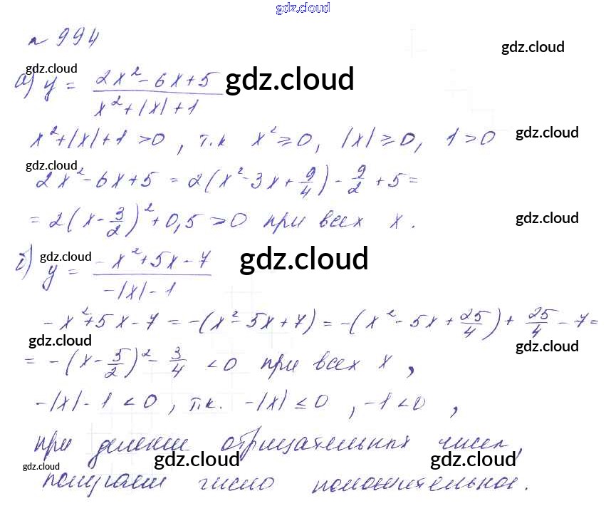 Ответ на задание 994 Учебник Алгебра  за 7 (седьмой) класс Макарычев, Миндюк, Нешков, Феоктистов УМК Углубленный уровень 2013