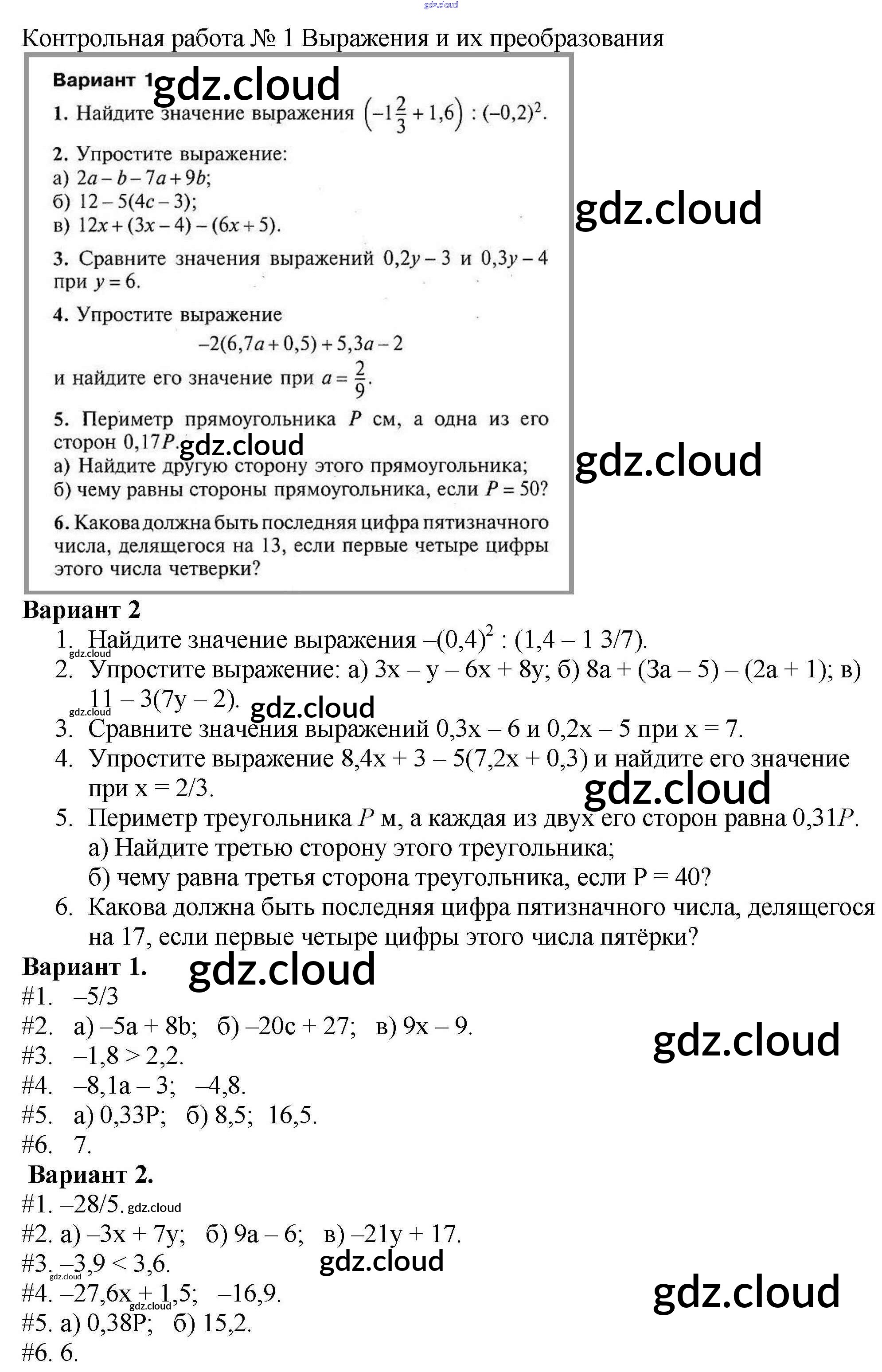 Ответы к Контрольным работам по Алгебре 7 класс Контрольно-измерительные материалы (КИМ) Мартышова ВАКО