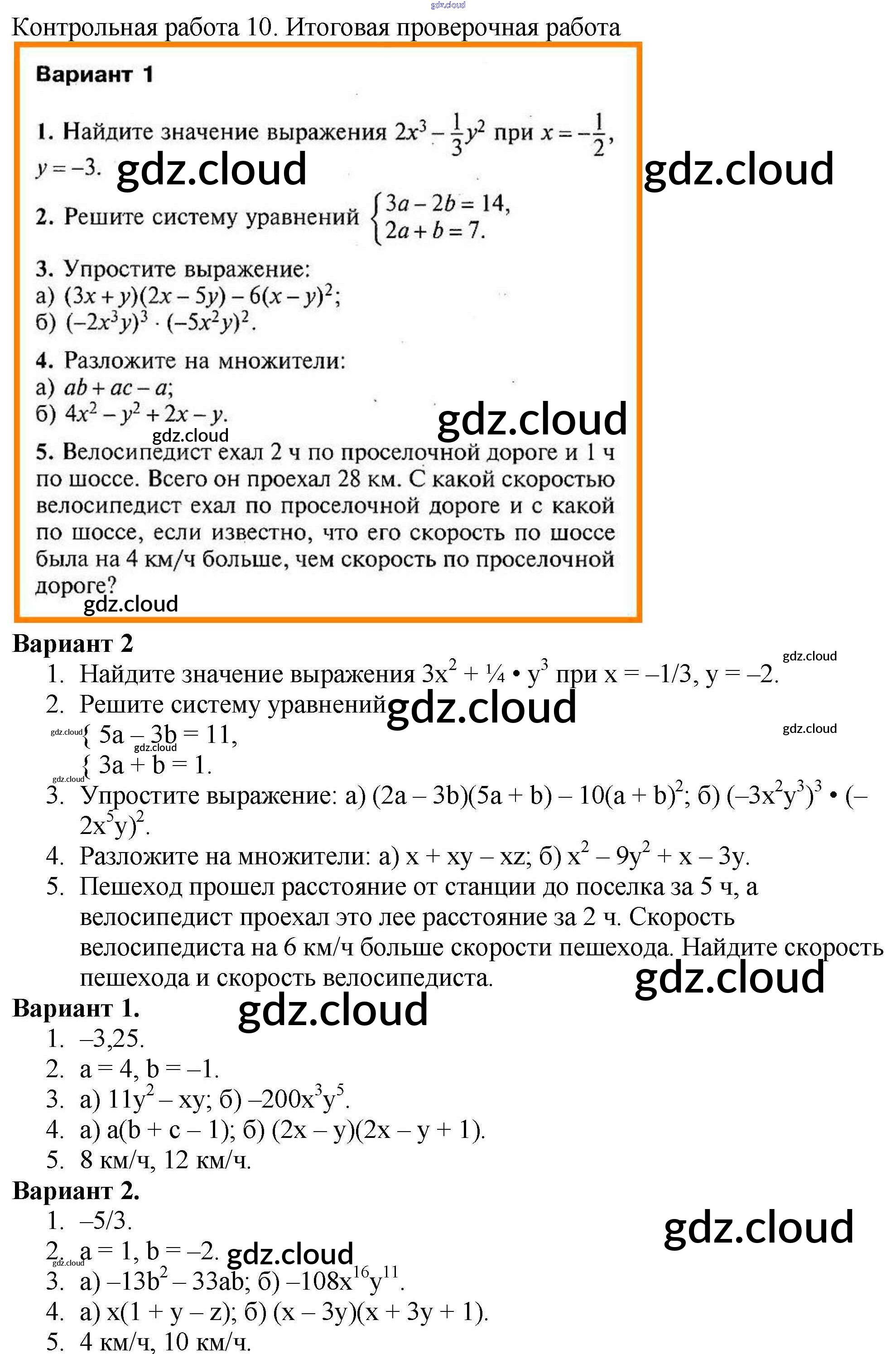 Ответ на задание 10 Контрольно-измерительные материалы (КИМ) Алгебра за 7 (седьмой) класс Мартышова 2017