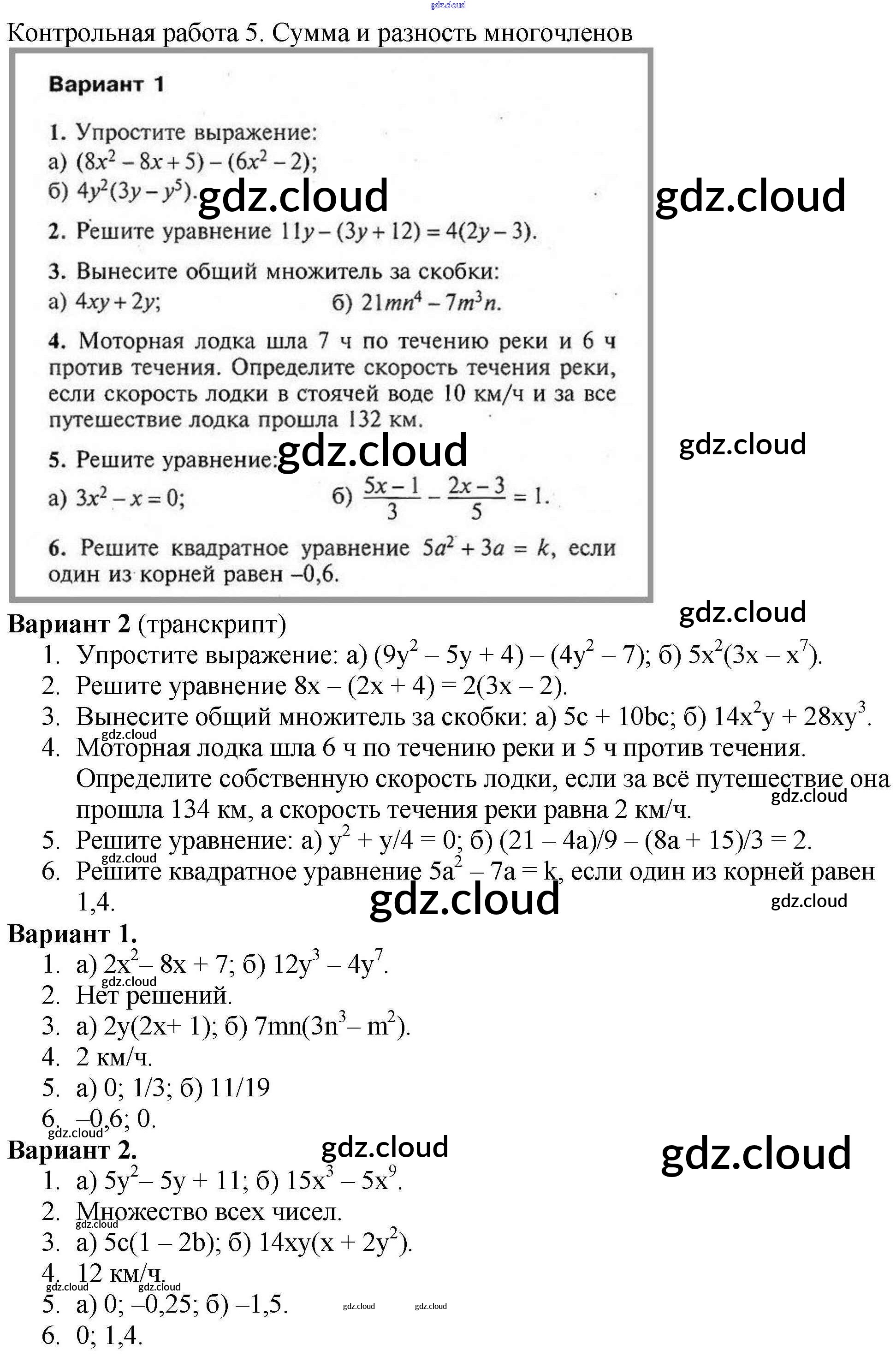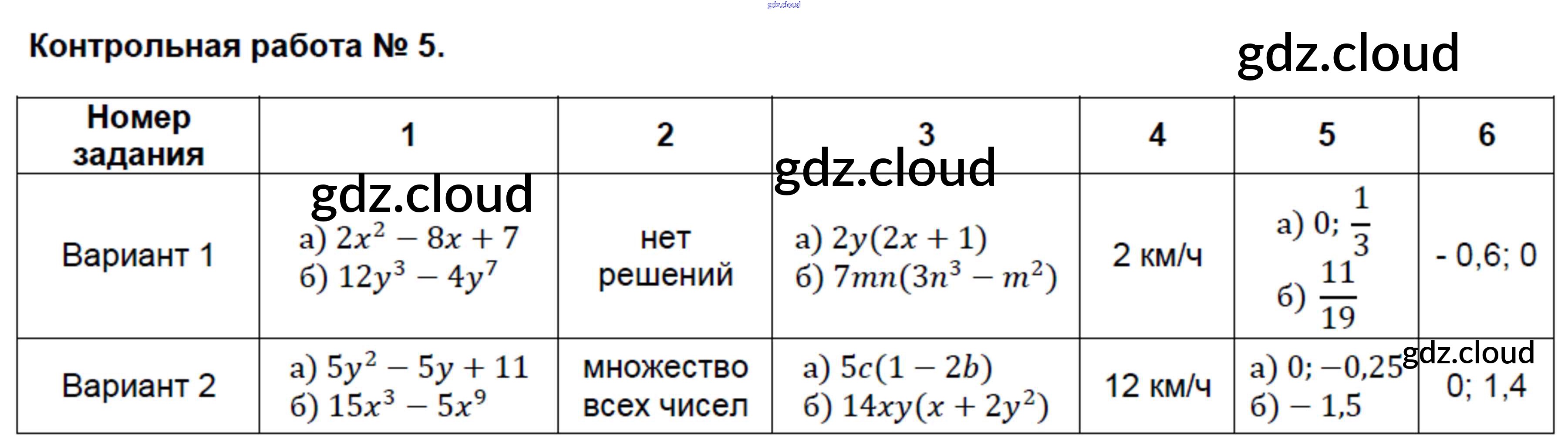 Ответ на задание 5 Контрольно-измерительные материалы (КИМ) Алгебра за 7 (седьмой) класс Мартышова 2017