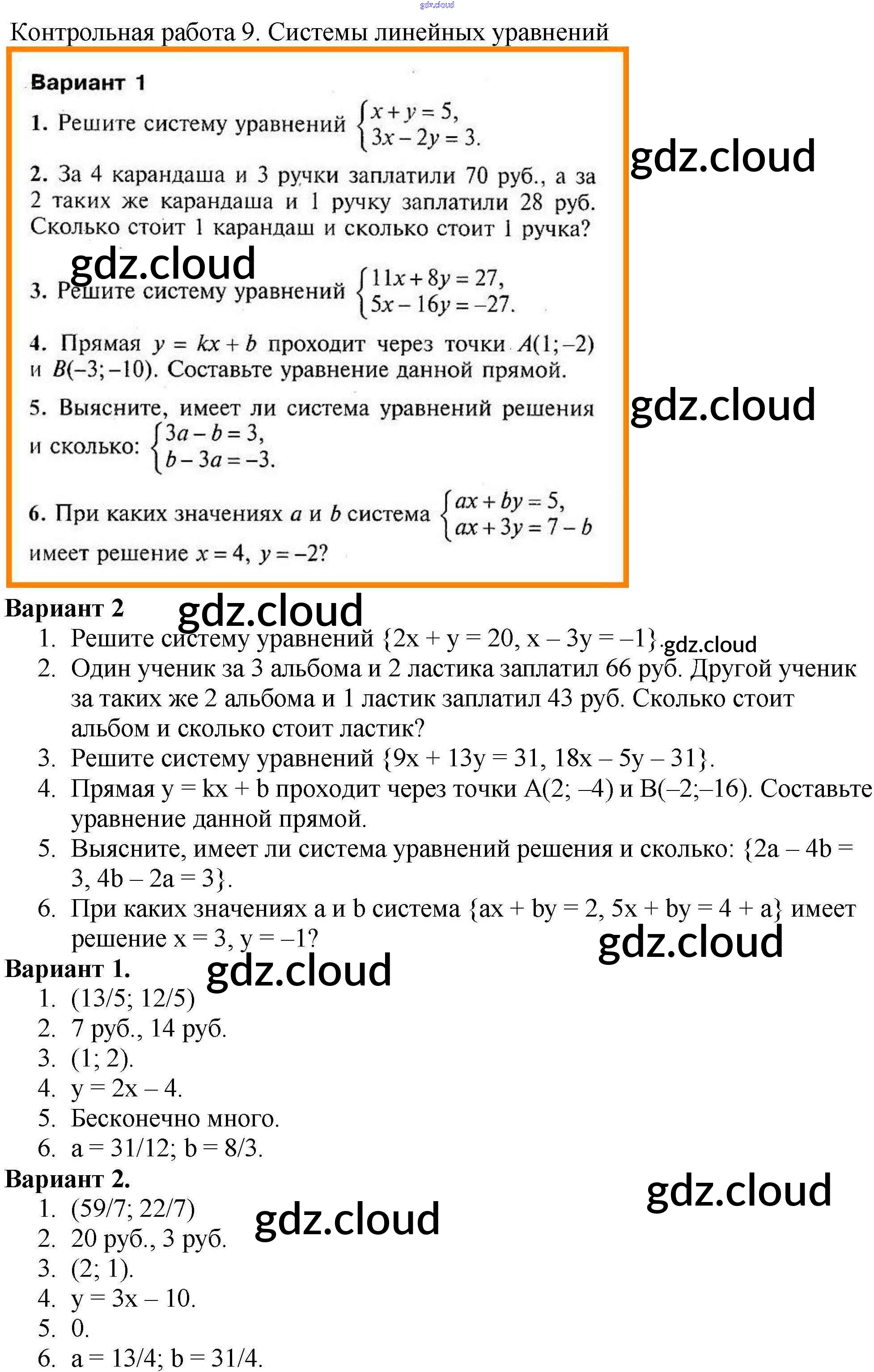 Ответ на задание 9 Контрольно-измерительные материалы (КИМ) Алгебра  за 7 (седьмой) класс Мартышова   2017