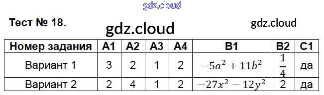 Ответы к Тестам по Алгебре 7 класс Контрольно-измерительные материалы (КИМ) Мартышова ВАКО