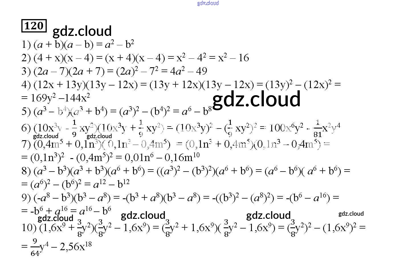 Ответ на задание 120 Дидактические материалы Алгебра  за 7 (седьмой) класс Мерзляк, Полонский, Рабинович, Якир УМК  2017