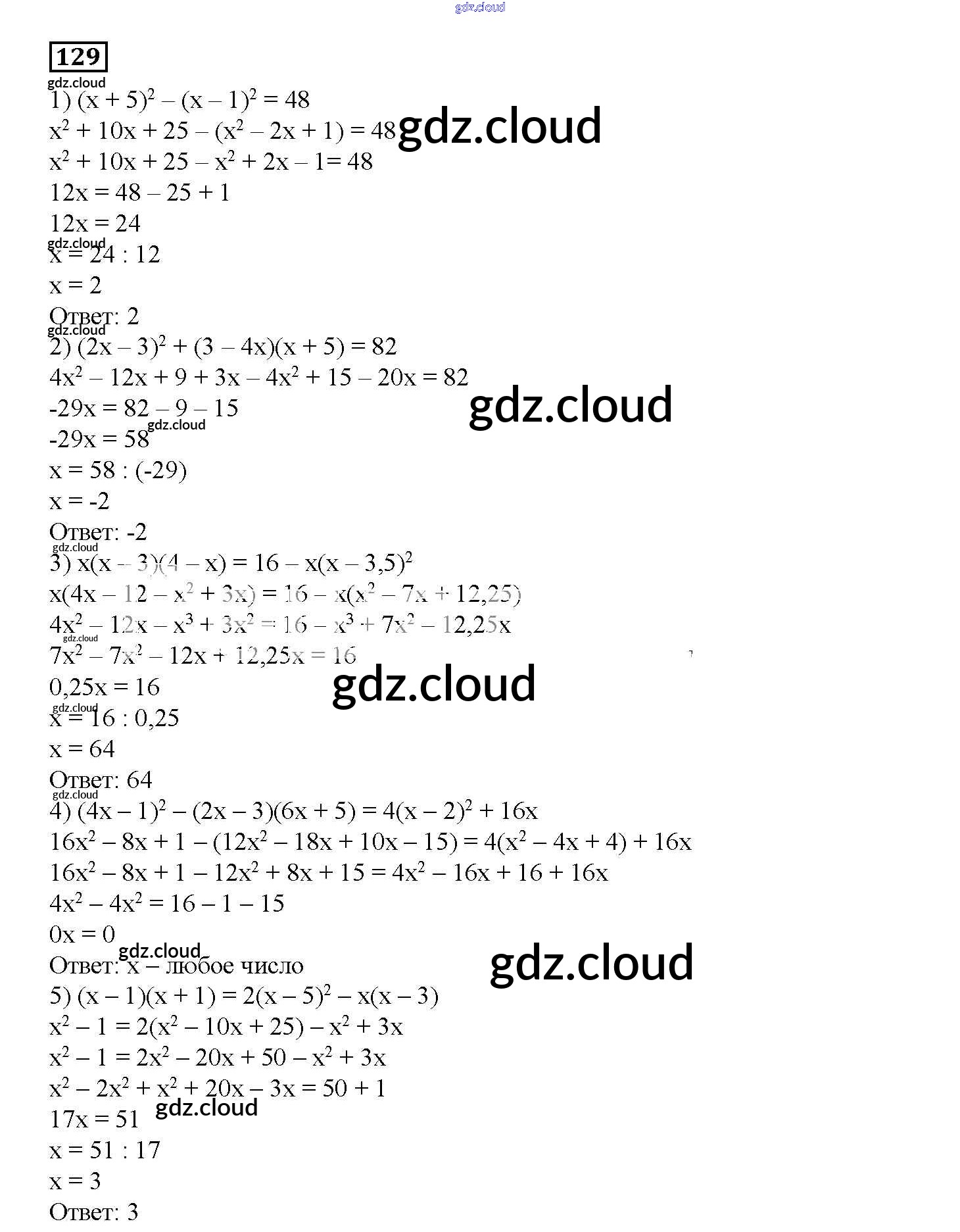 Ответ на задание 129 Дидактические материалы Алгебра  за 7 (седьмой) класс Мерзляк, Полонский, Рабинович, Якир УМК  2017