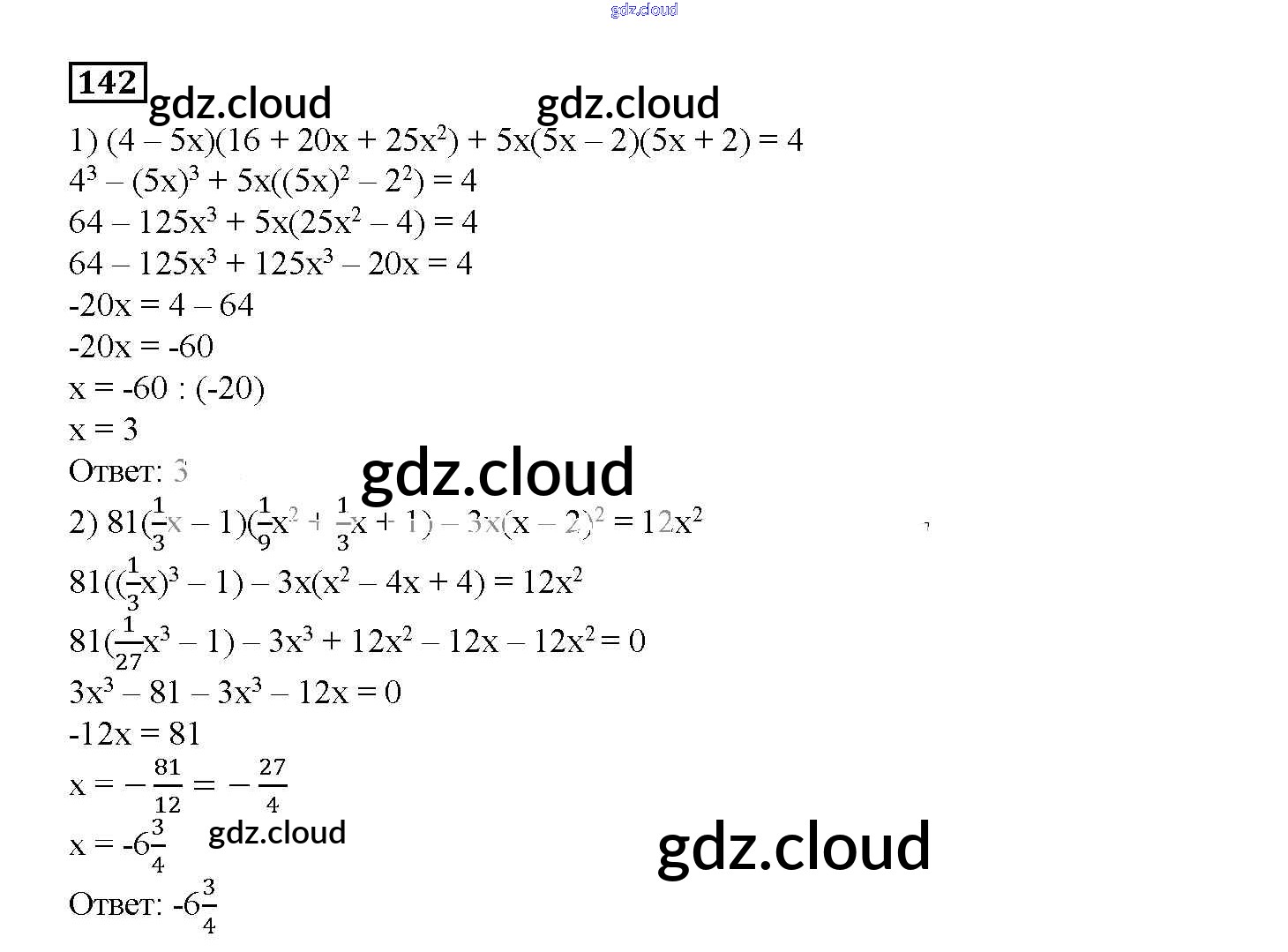 Ответ на задание 142 Дидактические материалы Алгебра за 7 (седьмой) класс Мерзляк, Полонский, Рабинович, Якир УМК 2017