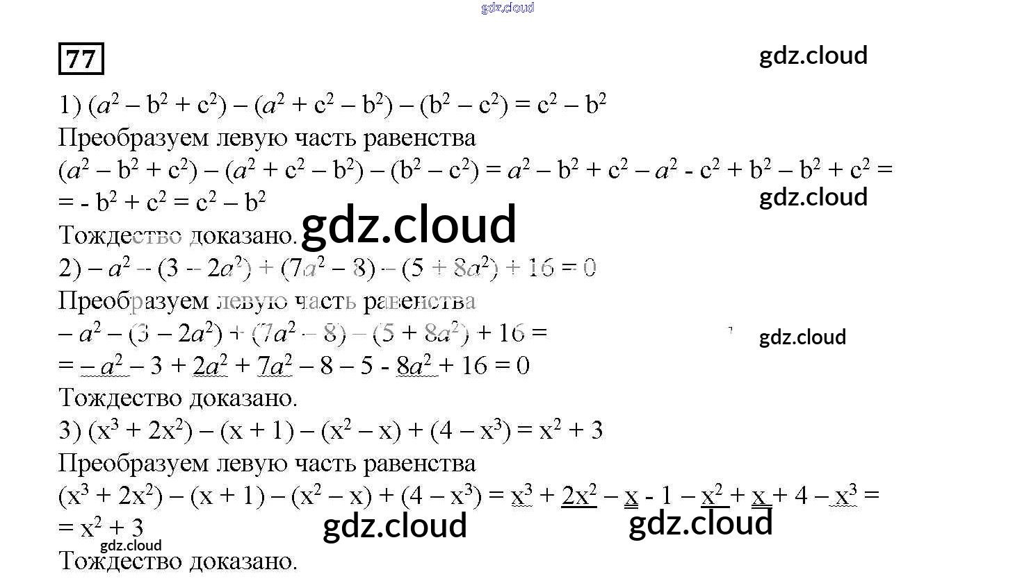 Ответ на задание 77 Дидактические материалы Алгебра  за 7 (седьмой) класс Мерзляк, Полонский, Рабинович, Якир УМК  2017