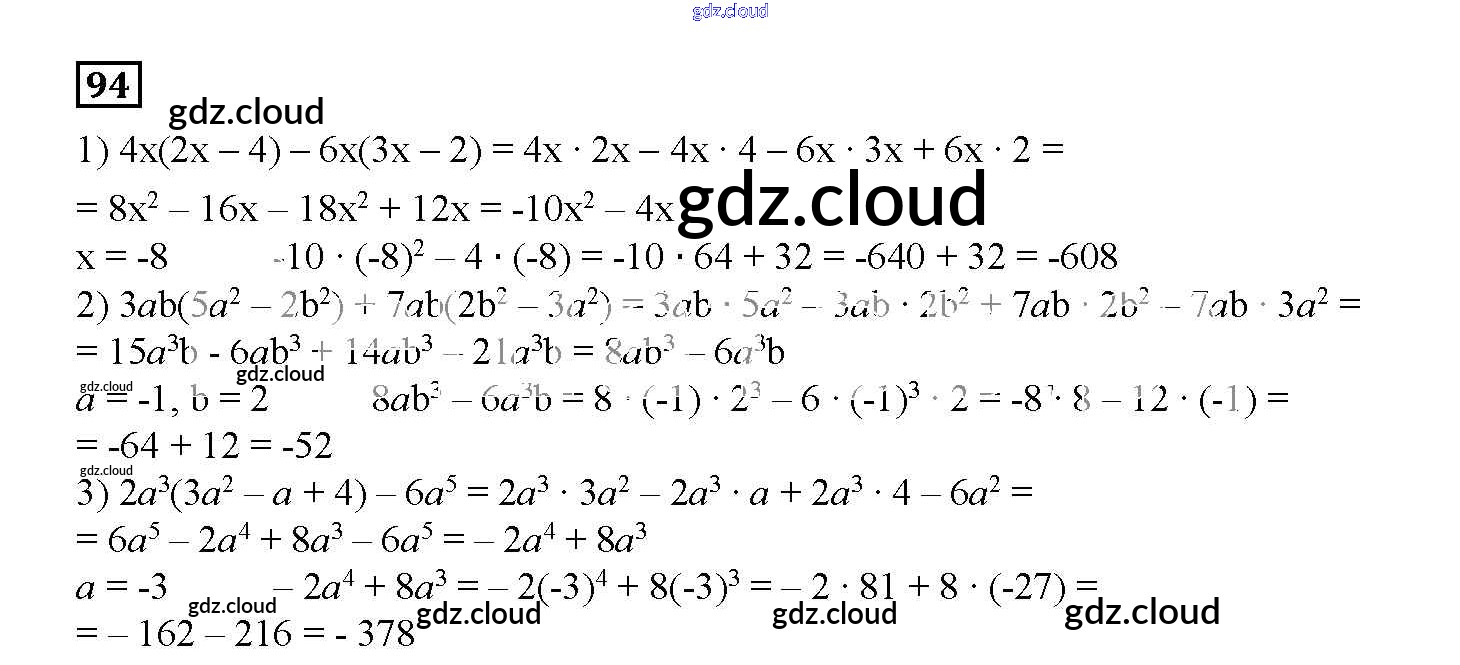 Ответ на задание 94 Дидактические материалы Алгебра  за 7 (седьмой) класс Мерзляк, Полонский, Рабинович, Якир УМК  2017