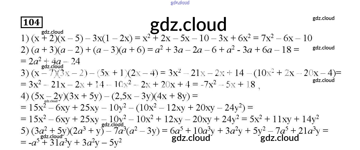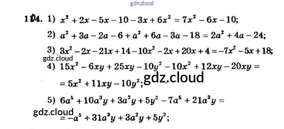 Ответ на задание 104 Дидактические материалы Алгебра  за 7 (седьмой) класс Мерзляк, Полонский, Рабинович, Якир УМК  2017