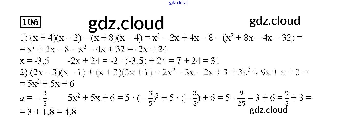 Ответ на задание 106 Дидактические материалы Алгебра за 7 (седьмой) класс Мерзляк, Полонский, Рабинович, Якир УМК 2017