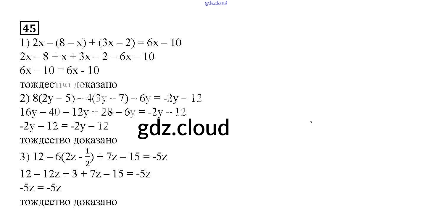Ответ на задание 45 Дидактические материалы Алгебра  за 7 (седьмой) класс Мерзляк, Полонский, Рабинович, Якир УМК  2017
