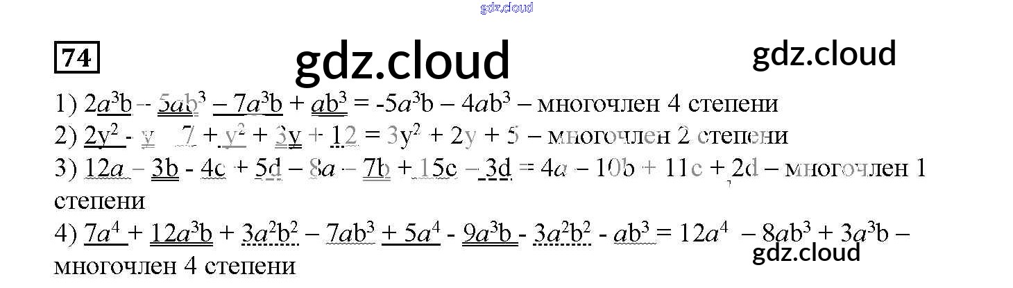 Ответ на задание 74 Дидактические материалы Алгебра  за 7 (седьмой) класс Мерзляк, Полонский, Рабинович, Якир УМК  2017