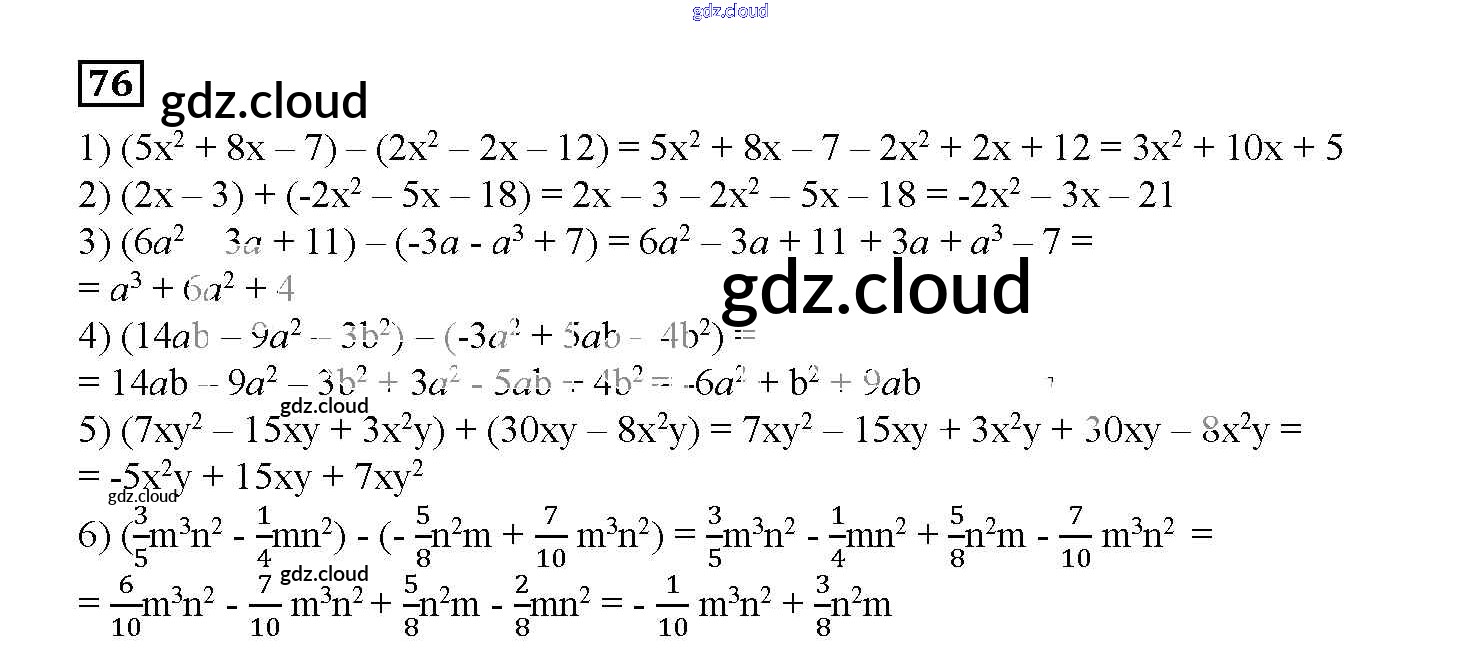 Ответ на задание 76 Дидактические материалы Алгебра  за 7 (седьмой) класс Мерзляк, Полонский, Рабинович, Якир УМК  2017