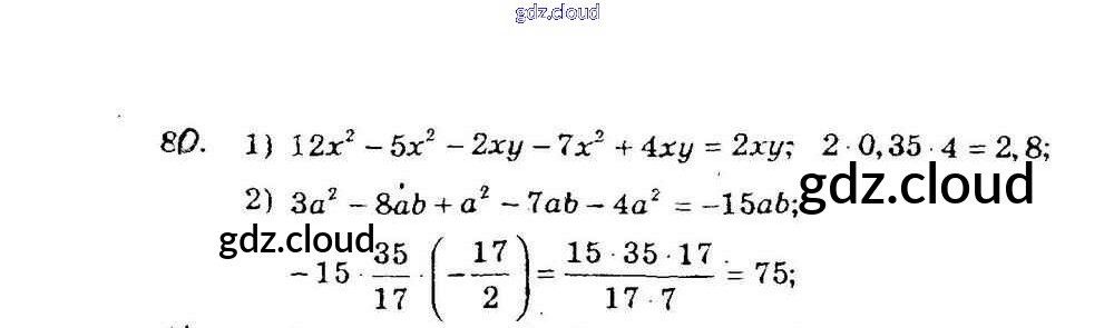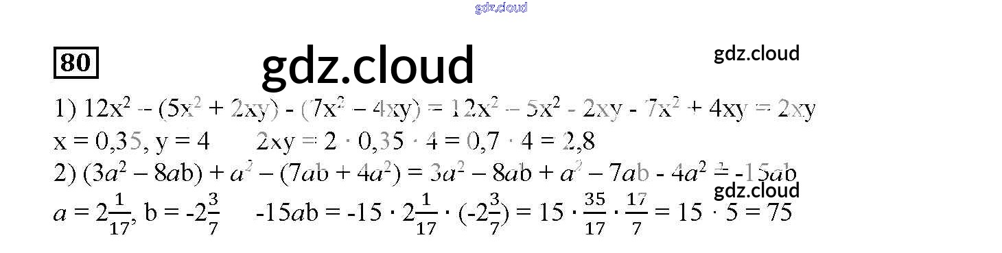Ответ на задание 80 Дидактические материалы Алгебра за 7 (седьмой) класс Мерзляк, Полонский, Рабинович, Якир УМК 2017