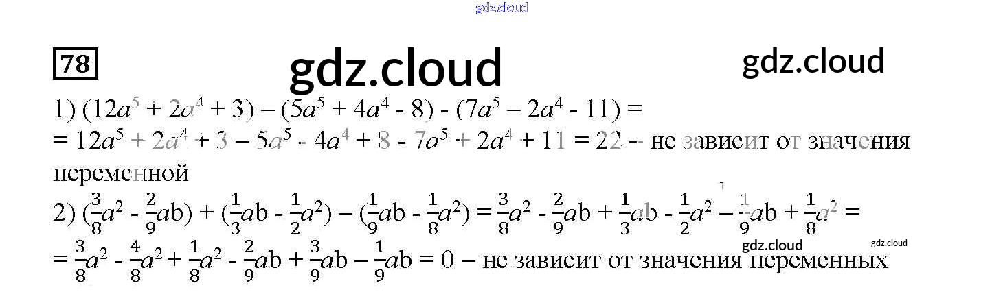 Ответ на задание 78 Дидактические материалы Алгебра  за 7 (седьмой) класс Мерзляк, Полонский, Рабинович, Якир УМК  2017