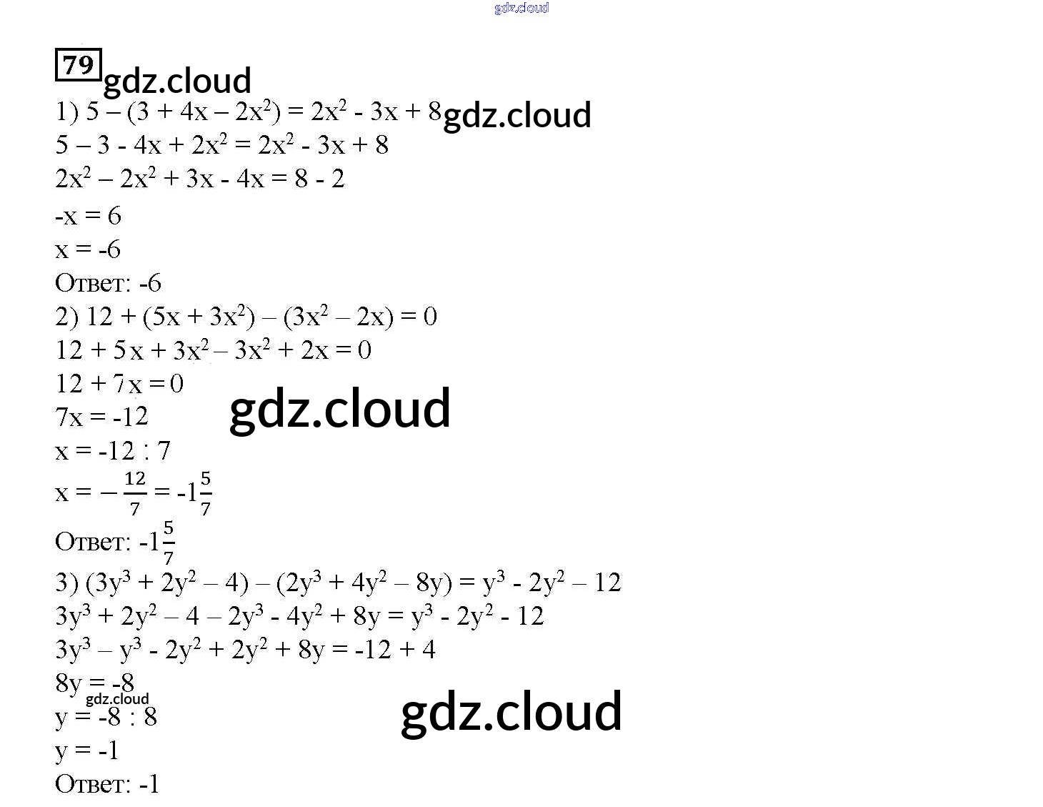 Ответ на задание 79 Дидактические материалы Алгебра  за 7 (седьмой) класс Мерзляк, Полонский, Рабинович, Якир УМК  2017