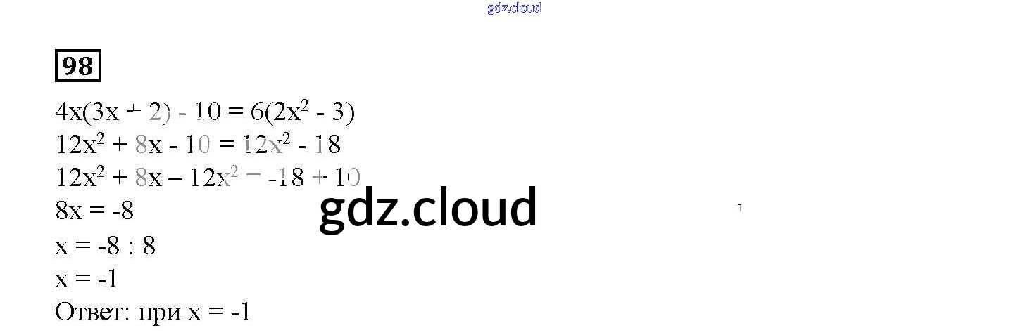 Ответ на задание 98 Дидактические материалы Алгебра за 7 (седьмой) класс Мерзляк, Полонский, Рабинович, Якир УМК 2017