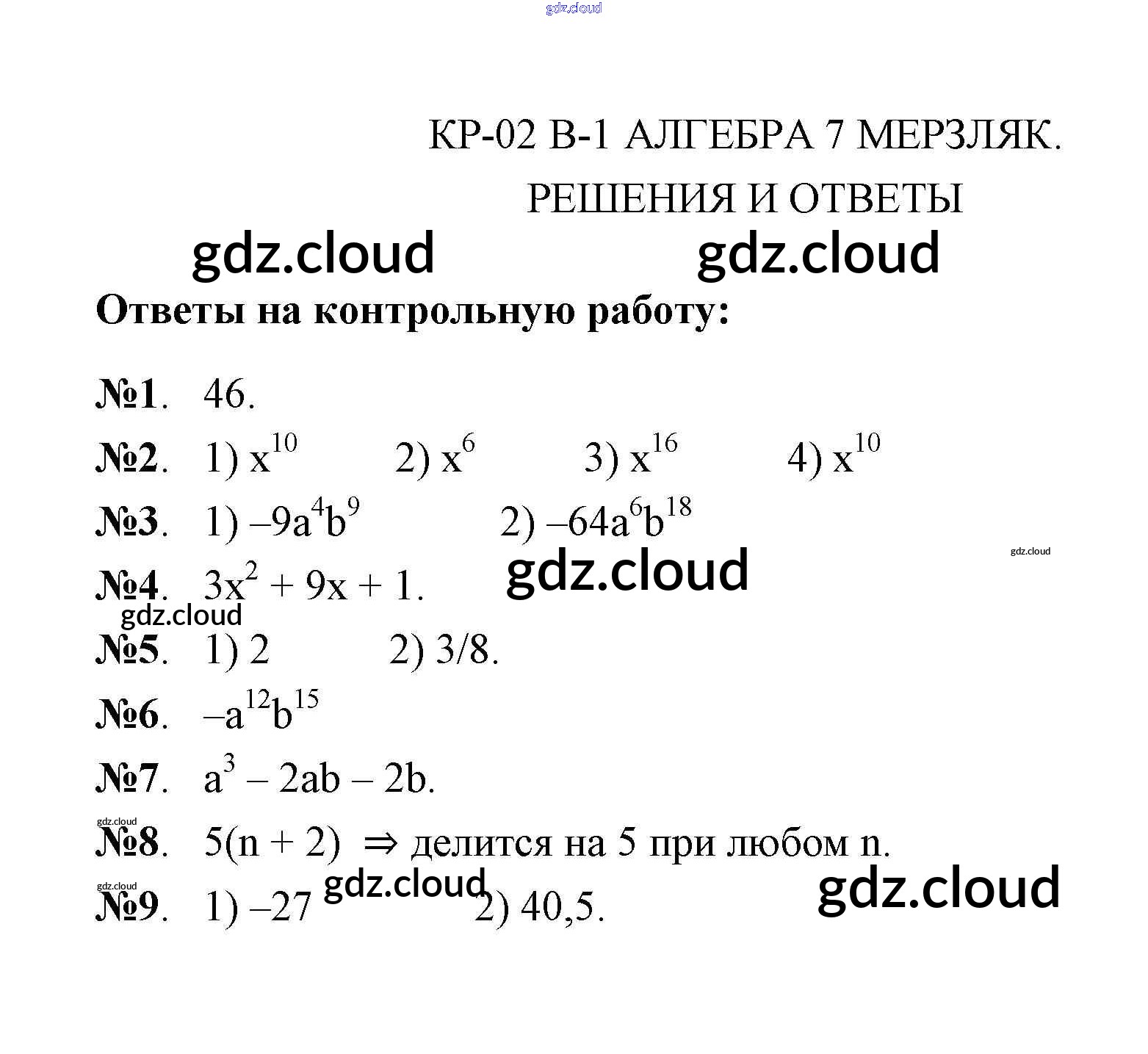 КР-2. Варианты Ответы к Контрольным работам по Алгебре 7 класс Дидактические материалы Мерзляк УМК   Вентана-граф