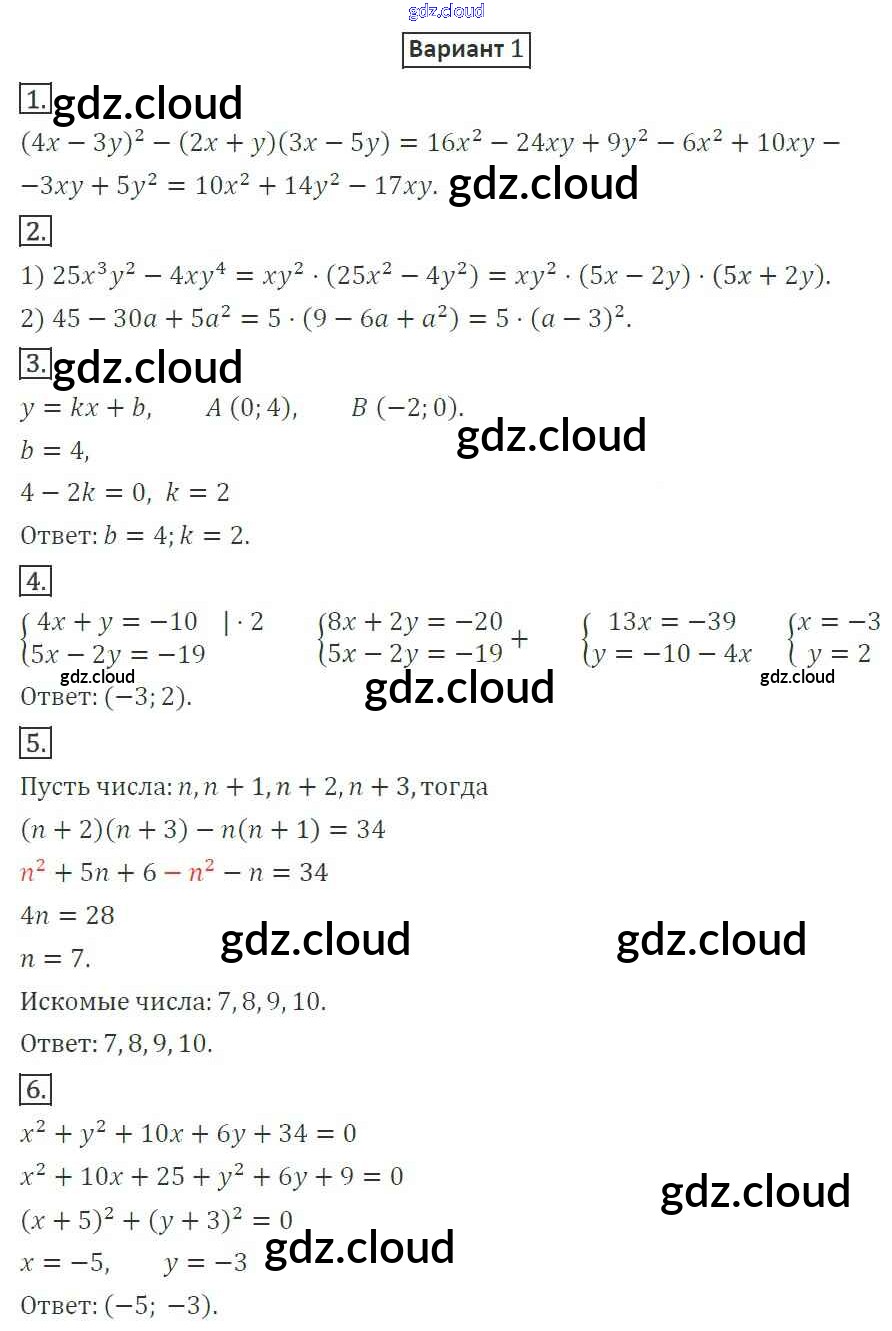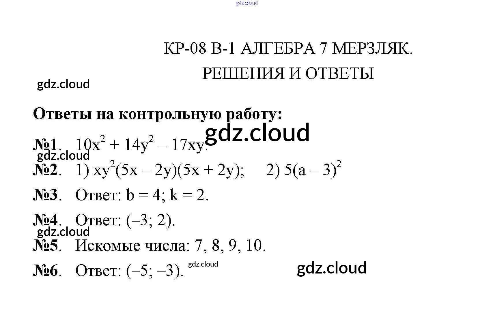 КР-8. Варианты Ответы к Контрольным работам по Алгебре 7 класс Дидактические материалы Мерзляк УМК   Вентана-граф