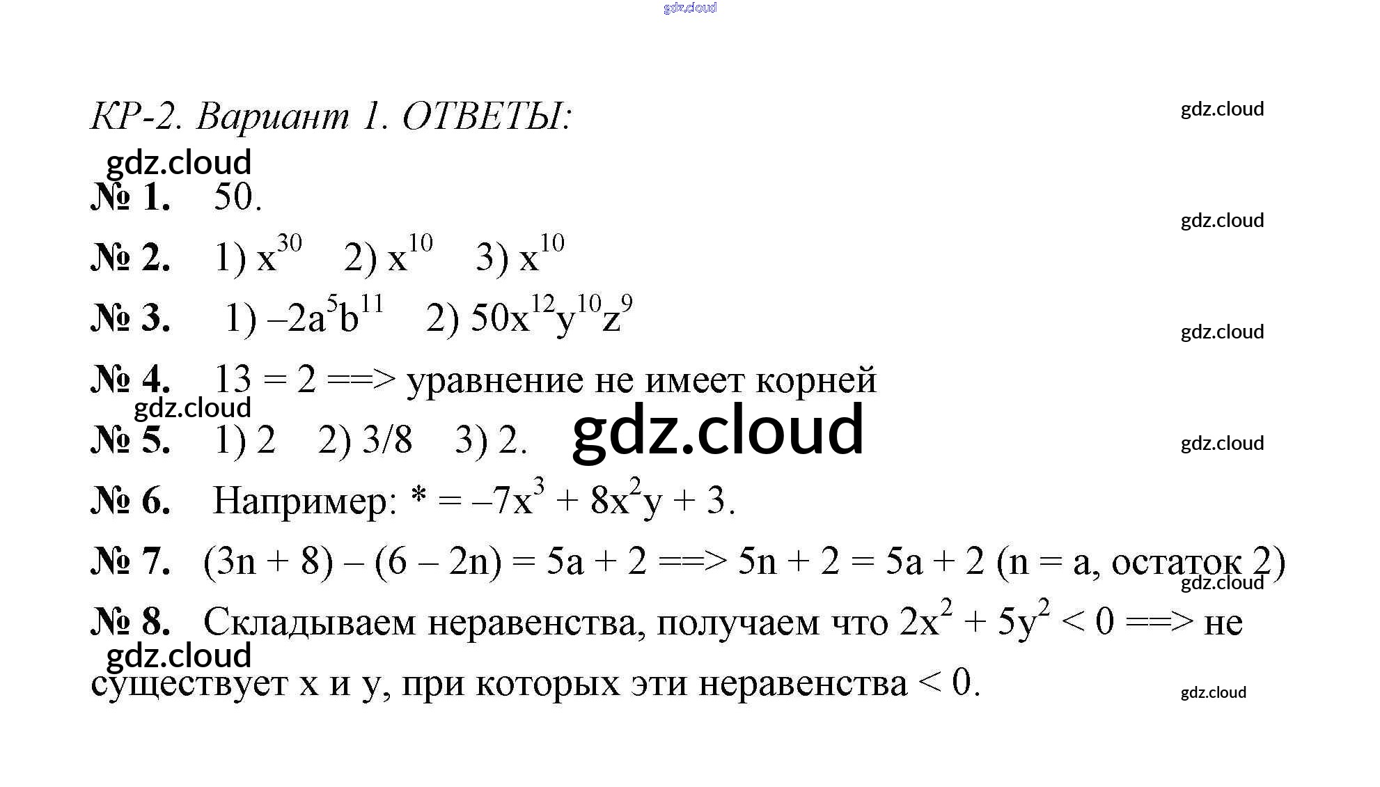 Контрольная работа 2 (Варианты) Ответы к Контрольным работам по Алгебре 7 класс Самостоятельные и контрольные работы Мерзляк Алгоритм успеха Углубленный уровень  Вентана-граф