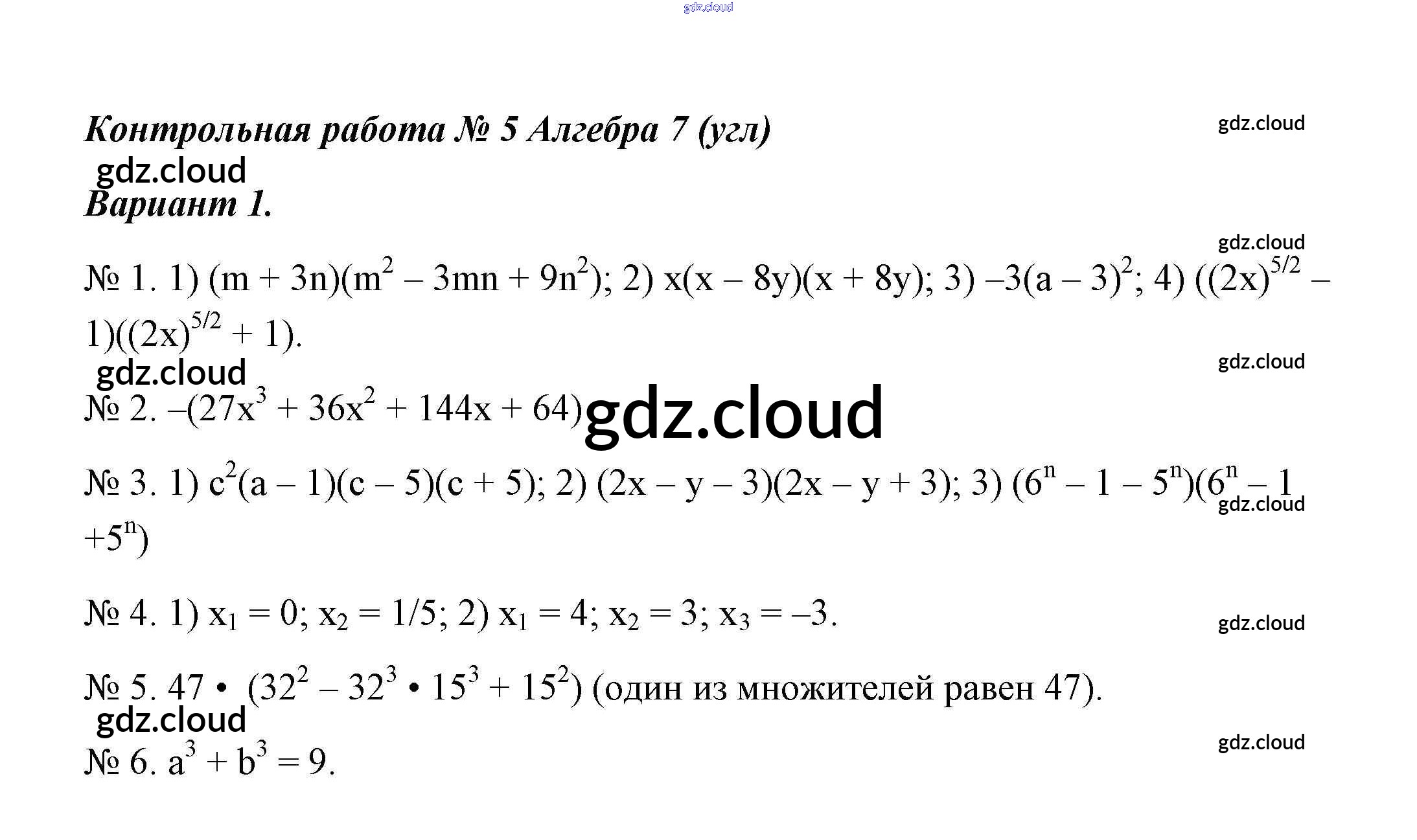 Контрольная работа 5 (Варианты) Ответы к Контрольным работам по Алгебре 7 класс Самостоятельные и контрольные работы Мерзляк Алгоритм успеха Углубленный уровень  Вентана-граф