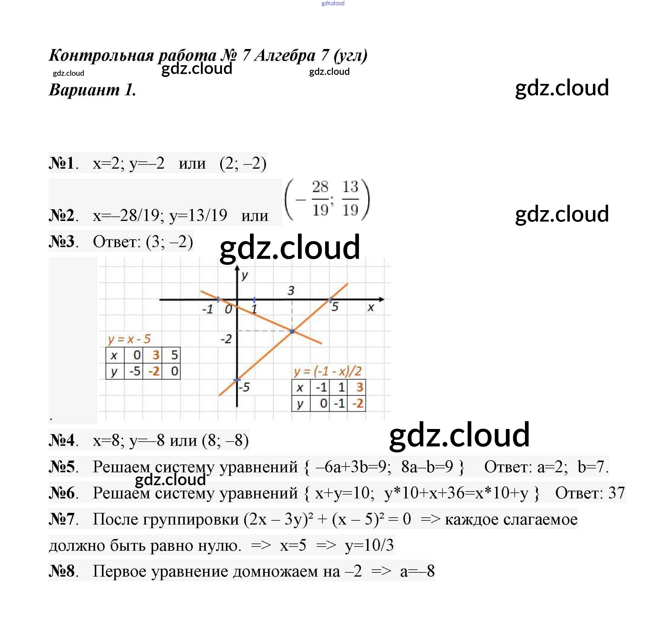 Контрольная работа 7 (Варианты) Ответы к Контрольным работам по Алгебре 7 класс Самостоятельные и контрольные работы Мерзляк Алгоритм успеха Углубленный уровень Вентана-граф