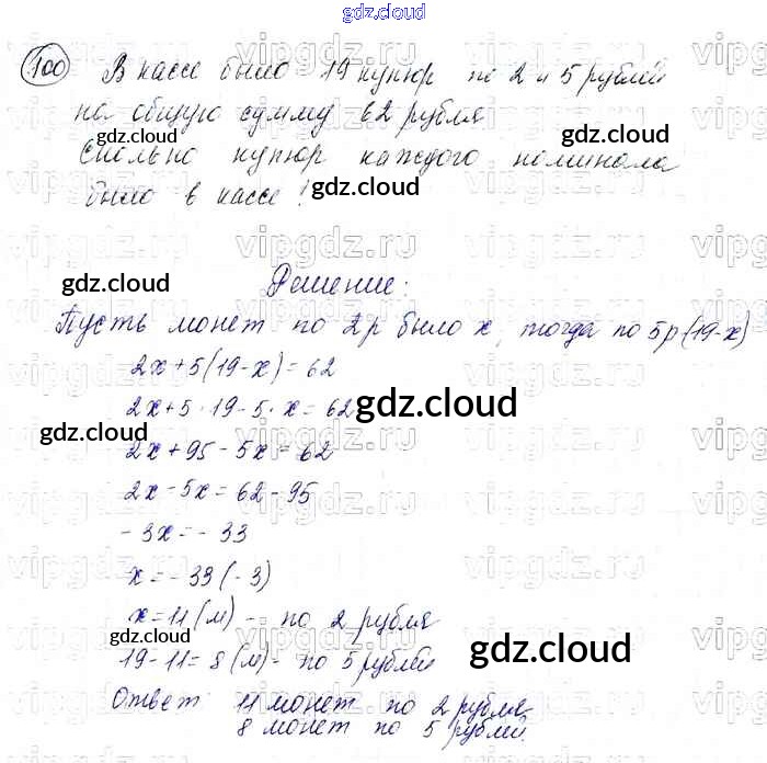 Ответ на задание 100 Учебник Алгебра за 7 (седьмой) класс Мерзляк, Полонский, Якир Алгоритм успеха Базовый уровень 2016