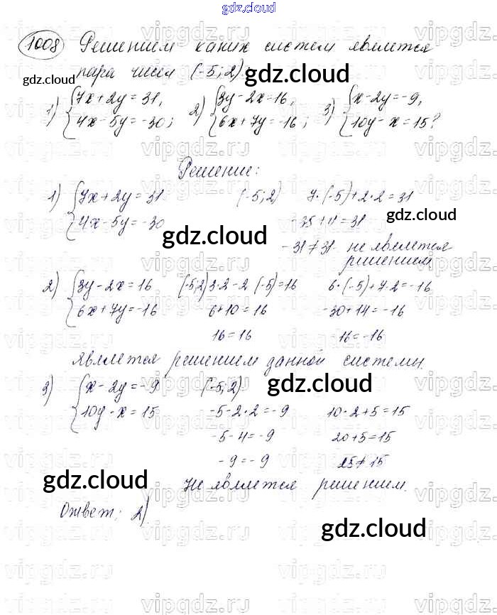 Ответ на задание 1008 Учебник Алгебра  за 7 (седьмой) класс Мерзляк, Полонский, Якир Алгоритм успеха Базовый уровень 2016