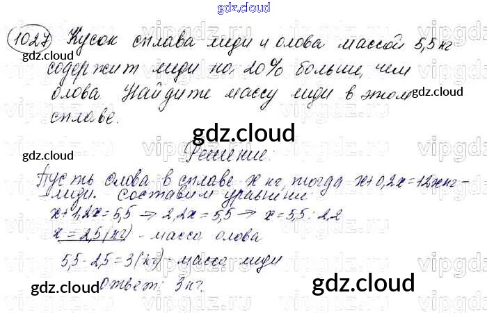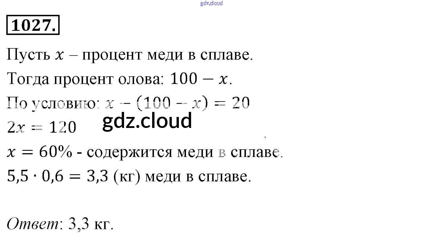 Ответ на задание 1027 Учебник Алгебра  за 7 (седьмой) класс Мерзляк, Полонский, Якир Алгоритм успеха Базовый уровень 2016