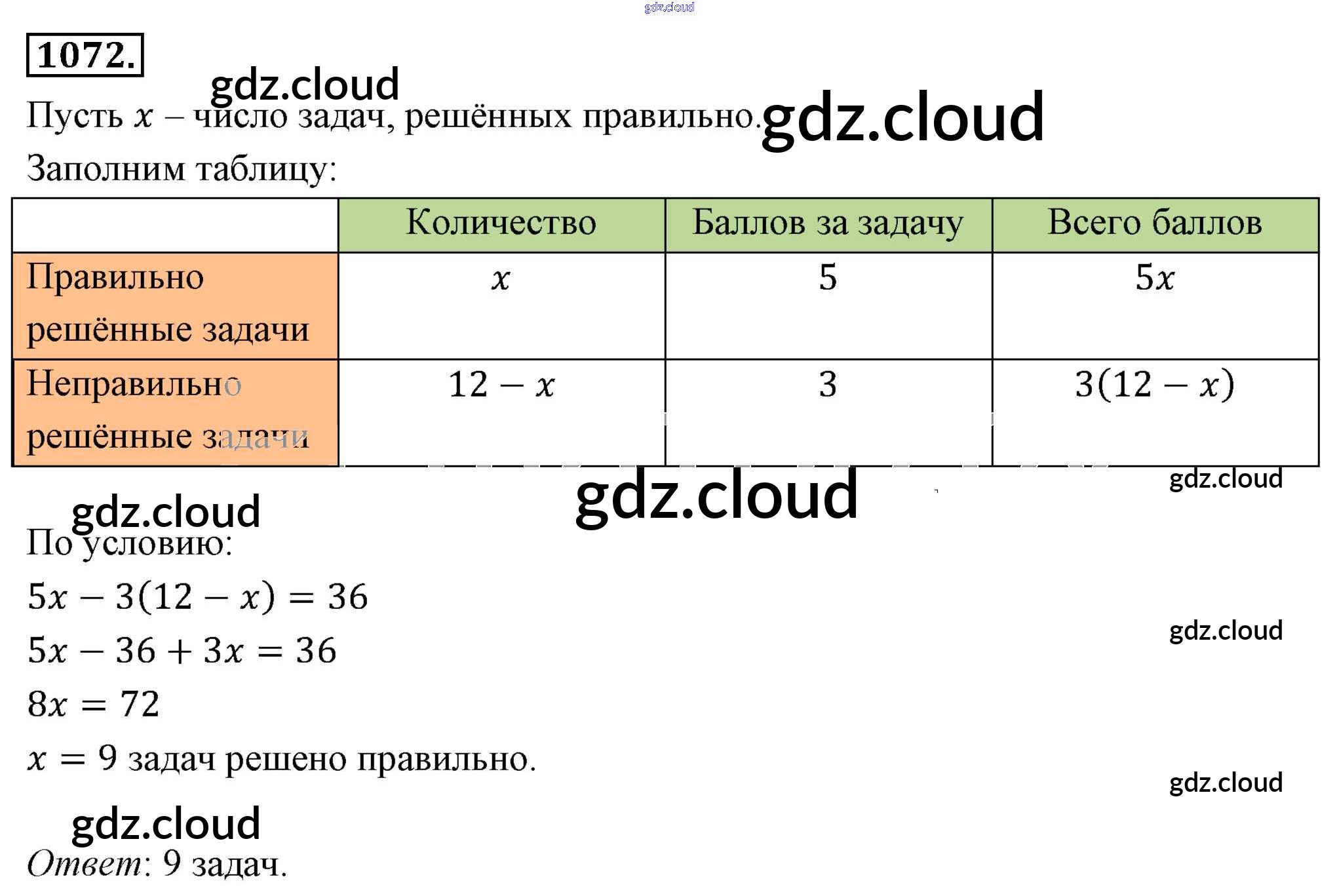 Ответ на задание 1072 Учебник Алгебра  за 7 (седьмой) класс Мерзляк, Полонский, Якир Алгоритм успеха Базовый уровень 2016